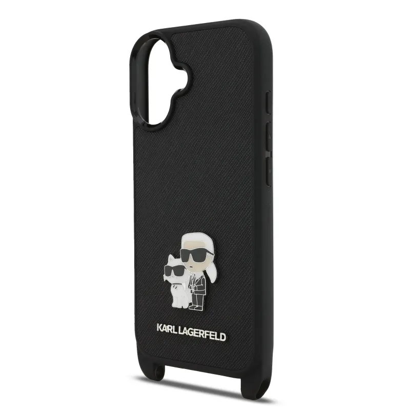 Karl Lagerfeld Saffiano Crossbody Popruh Metal Karl and Choupette Zadní Kryt pro iPhone 17 Black