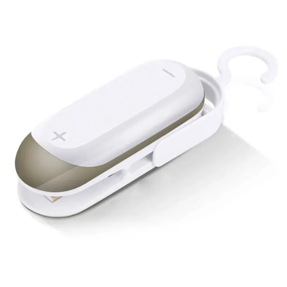 Kompaktní mini ruční svářečka sáčků je praktickým pomocníkem pro uzavírání otevřených obalů potravin. Umožňuje rychlé zatavení plastových sáčků, čímž pomáhá zachovat čerstvost a chránit obsah před vlhkostí. Díky jednoduchému ručnímu provozu je manipulace snadná a vhodná pro každodenní použití v kuchyni. Bílé plastové provedení je lehké, skladné a snadno se uloží do zásuvky.