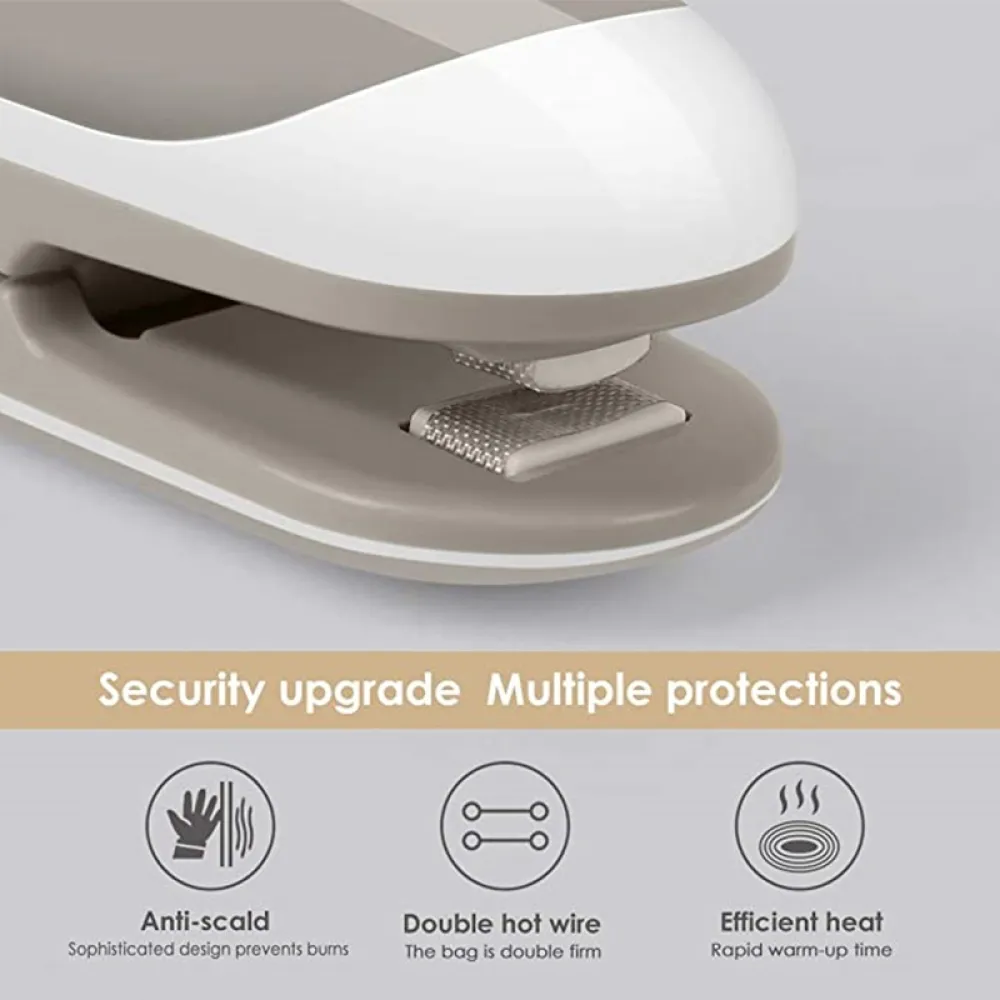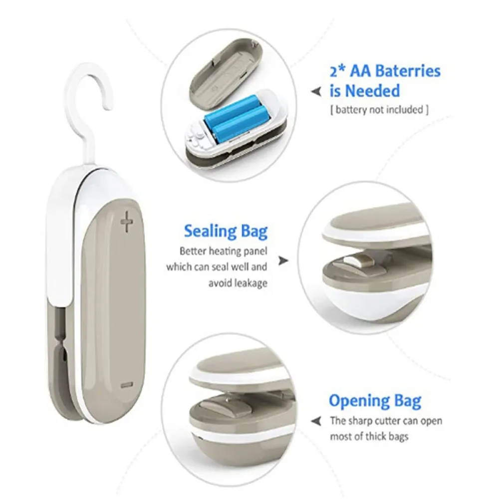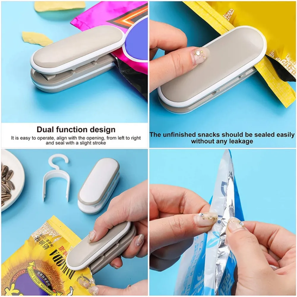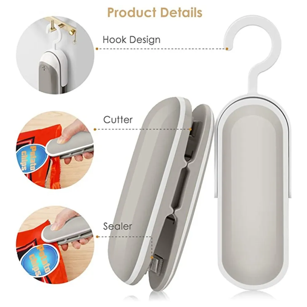 Kompaktní mini ruční svářečka sáčků je praktickým pomocníkem pro uzavírání otevřených obalů potravin. Umožňuje rychlé zatavení plastových sáčků, čímž pomáhá zachovat čerstvost a chránit obsah před vlhkostí. Díky jednoduchému ručnímu provozu je manipulace snadná a vhodná pro každodenní použití v kuchyni. Šedé plastové provedení je lehké, skladné a snadno se uloží do zásuvky.