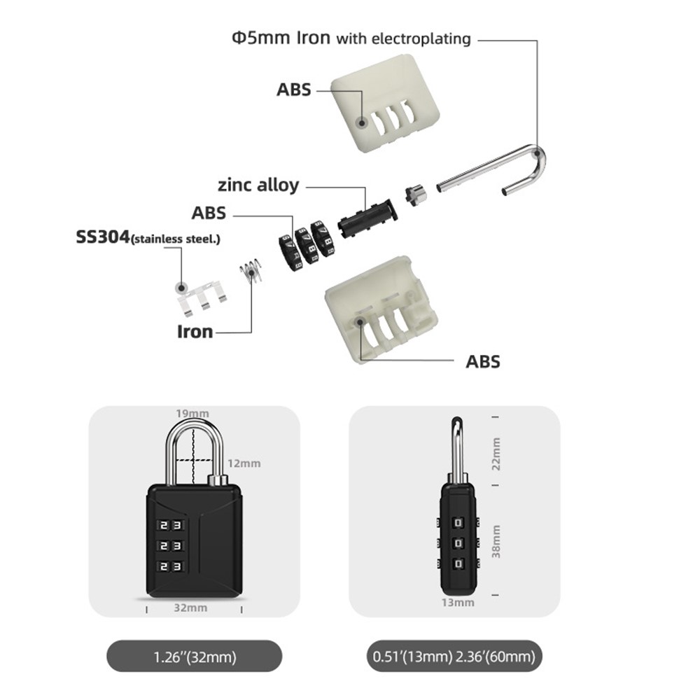 Zámek je určen pro zabezpečení kufrů, batohů, školních tašek a skříněk. Ideální pro cestování, školu i každodenní použití.