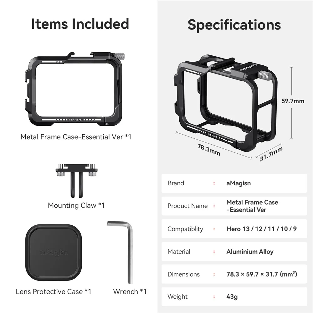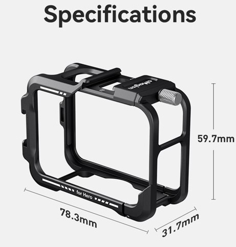 Značka: AMAGISN Typ příslušenství: kovový ochranný rám Materiál: kov Rozměry: 78,3 × 59,7 × 31,7 mm Kompatibilita: GoPro Hero 13 / 12 / 11 / 10 / 9 Barva: černá