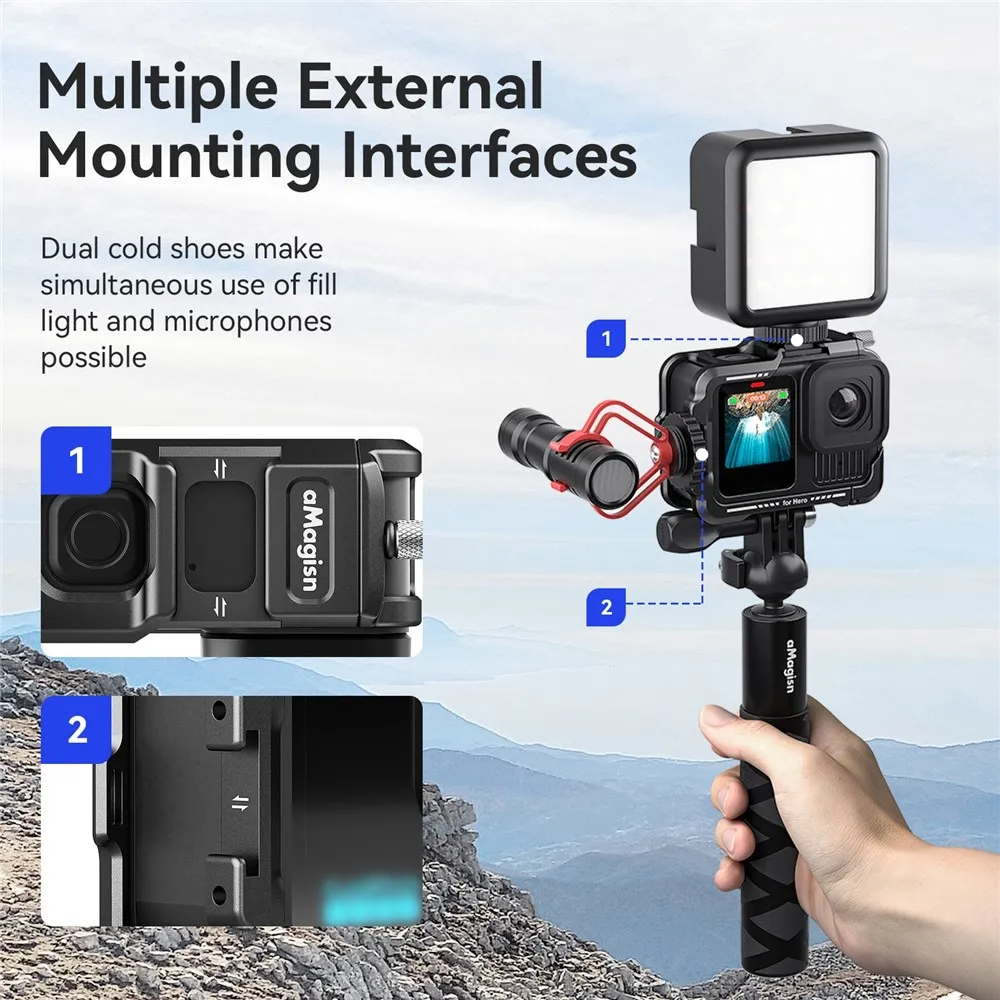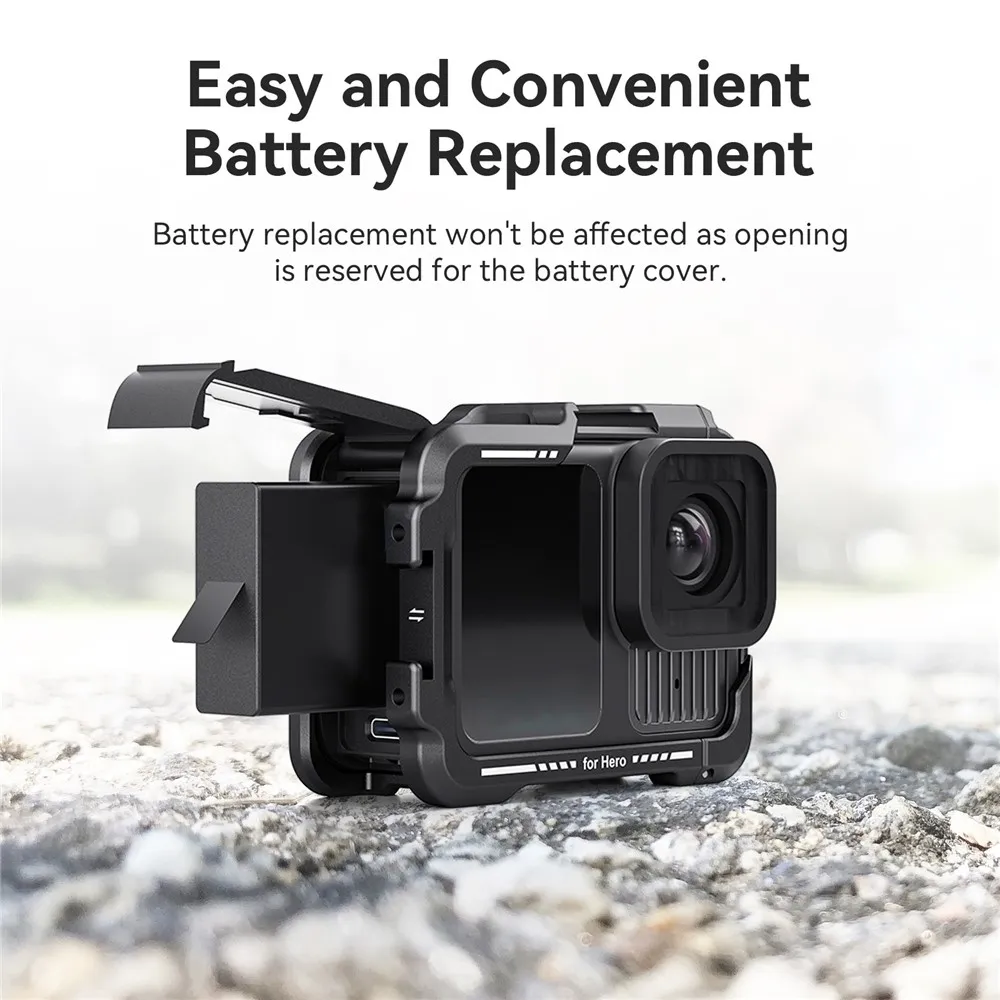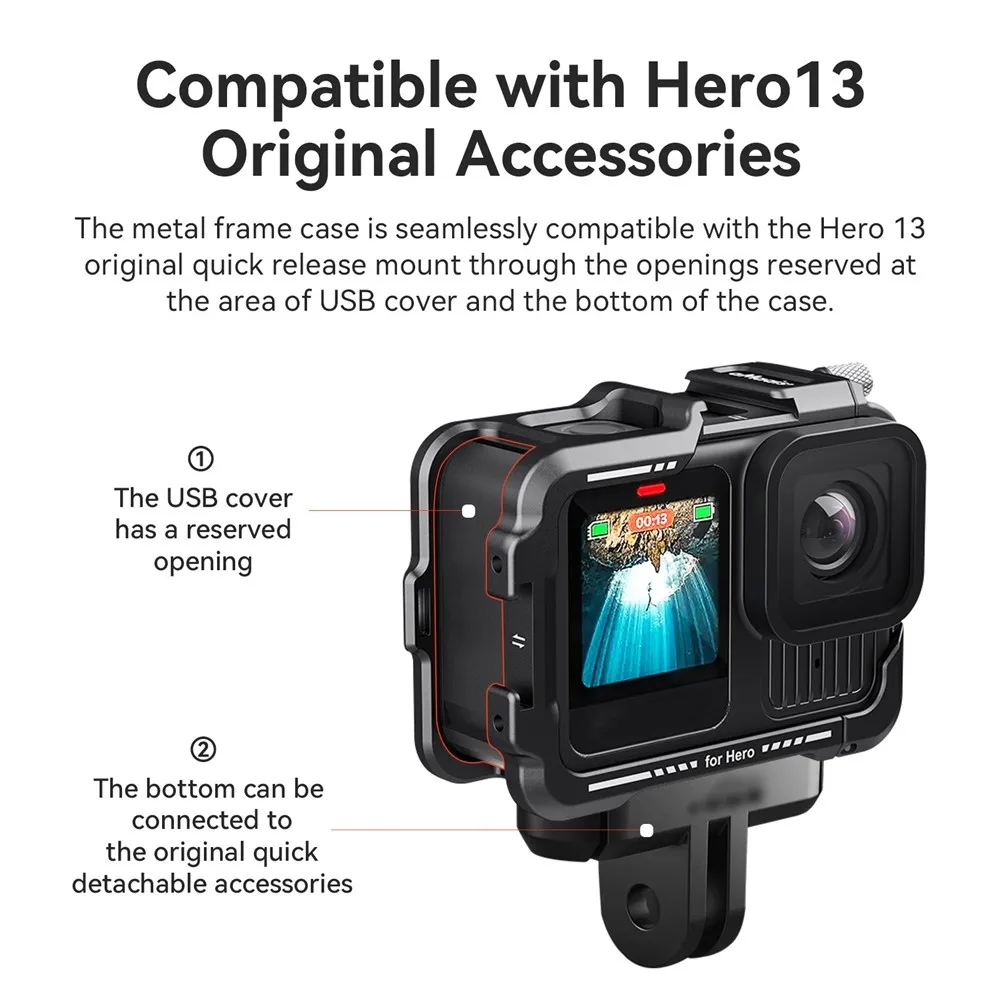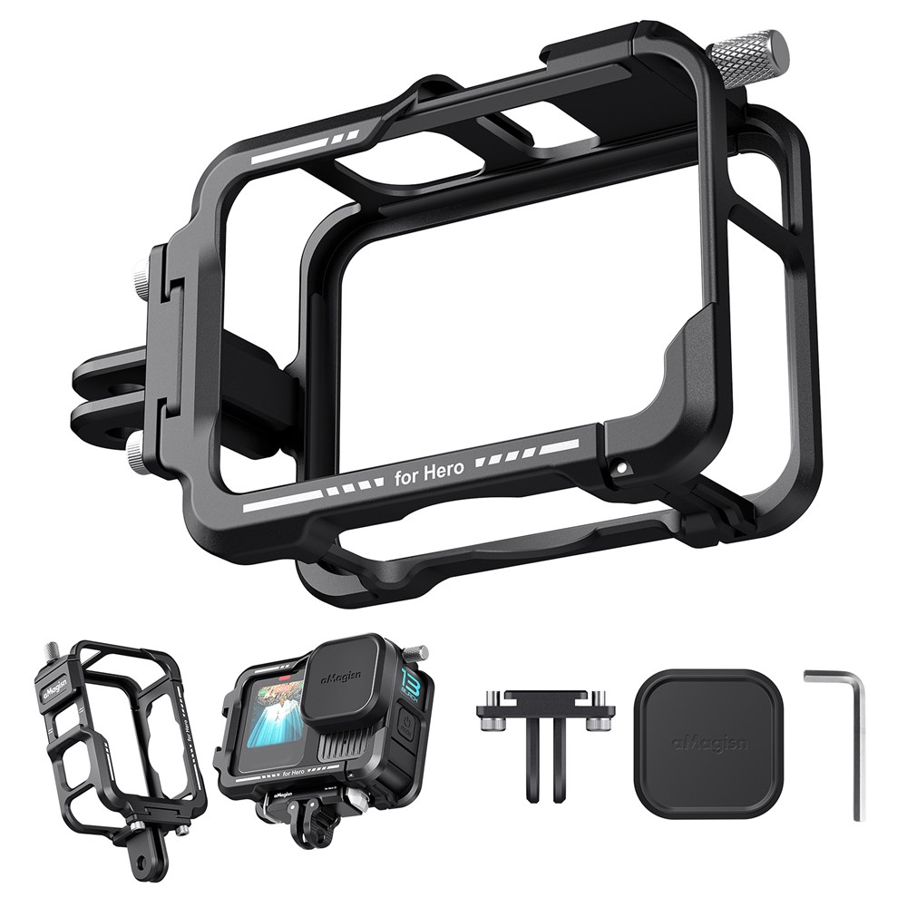 Kovový ochranný rám AMAGISN je navržen pro kamery GoPro Hero 13, 12, 11, 10 a 9 a poskytuje zvýšenou ochranu při natáčení v náročných podmínkách. Pevná kovová konstrukce chrání tělo kamery před nárazy, pády a mechanickým poškozením při cyklistice, sportu i outdoor aktivitách. Přesné zpracování zajišťuje stabilní usazení kamery bez omezení přístupu k tlačítkům, displeji, portům ani objektivu.