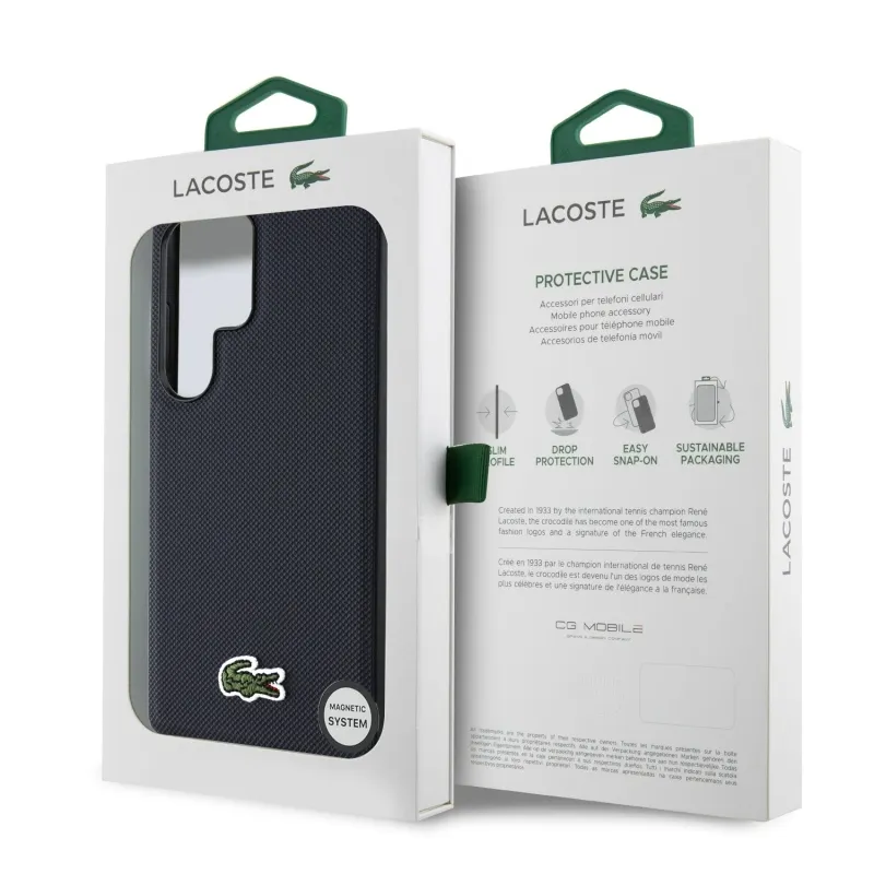 Lacoste Iconic Petit Pique Woven Logo MagSafe Zadní Kryt pro Samsung Galaxy S25 Ultra Blue