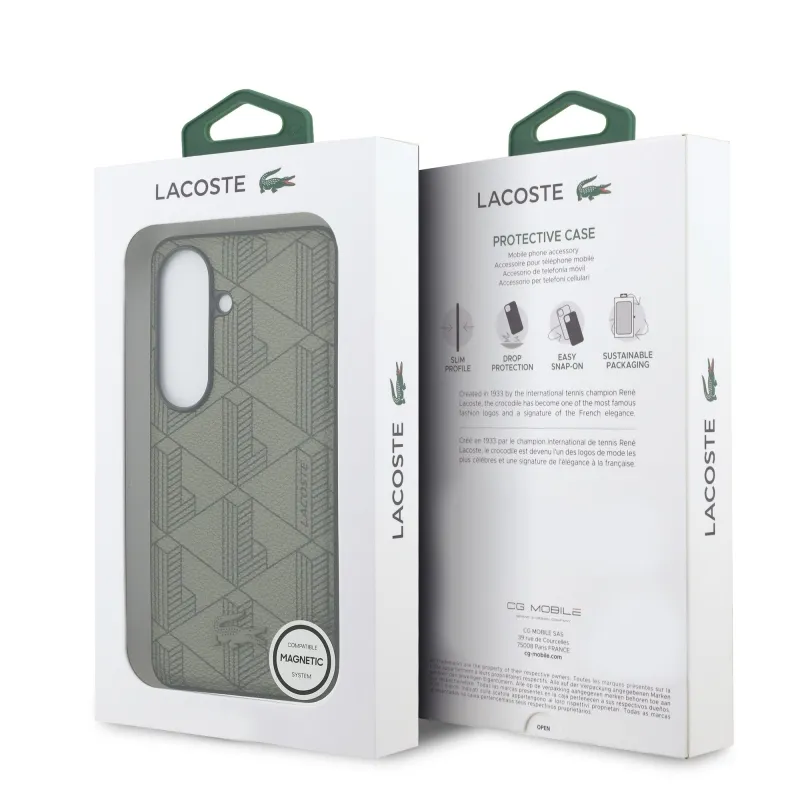 Lacoste PVC Blend Monogram Magnetic Zadní Kryt pro Samsung Galaxy S26 Khaki