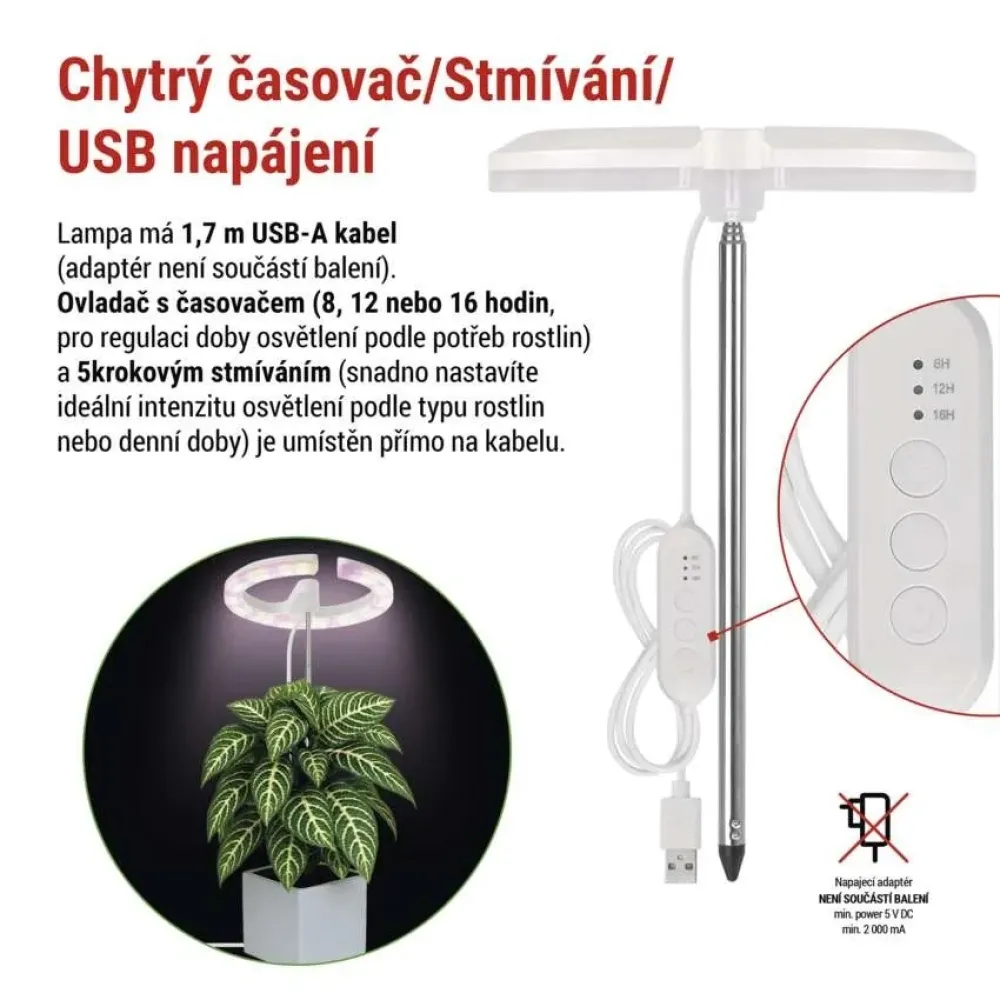 Pěstební lampa Z7902 je navržena speciálně pro citlivé pokojové rostliny, které potřebují jemné, rovnoměrné a přitom dostatečně intenzivní světlo. Díky kombinaci plnospektrálního bílého a červeného LED světla poskytuje rostlinám ideální podmínky pro zdravý růst, bohaté olistění i květenství – a to po celý rok, i v místech s minimem denního světla.