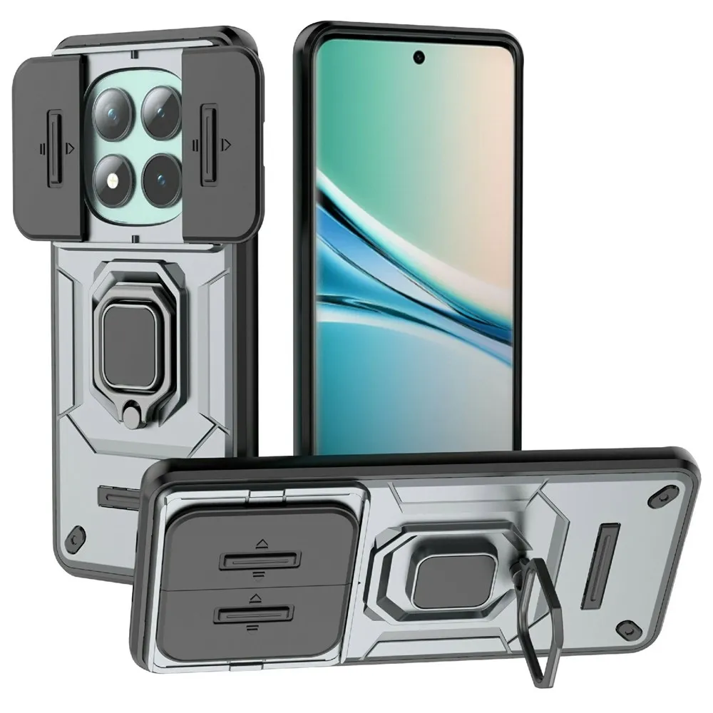 Naše odolné pouzdro kombinuje v sobě pevnost kovu, flexibilitu pružného gelu a praktičnost plastu, aby vašemu telefonu poskytlo maximální ochranu před pády, škrábanci a dalším poškozením. Šedá barva dodává elegantní a moderní vzhled, zatímco inovativní obal s posuvným krytem čočky fotoaparátu zajišťuje, že vaše fotky budou vždy ostré a bez poškrábání čočky.