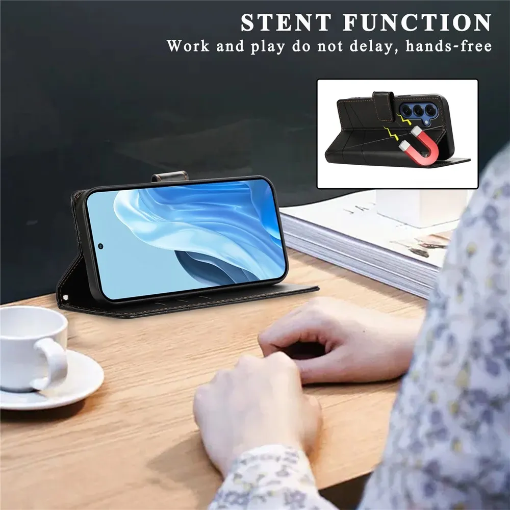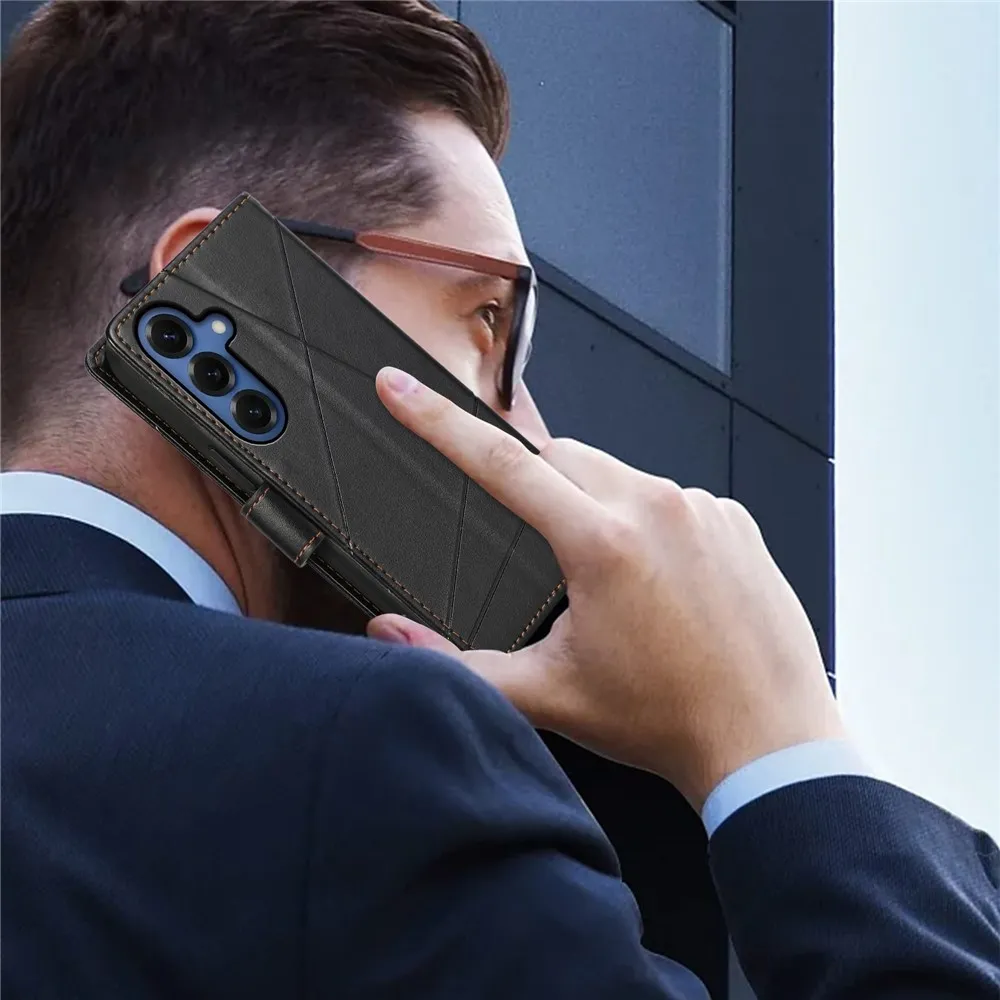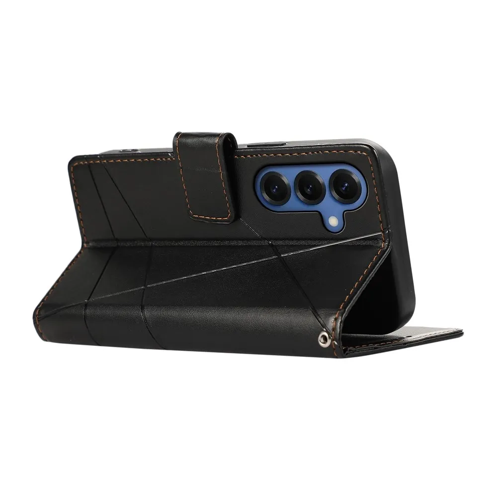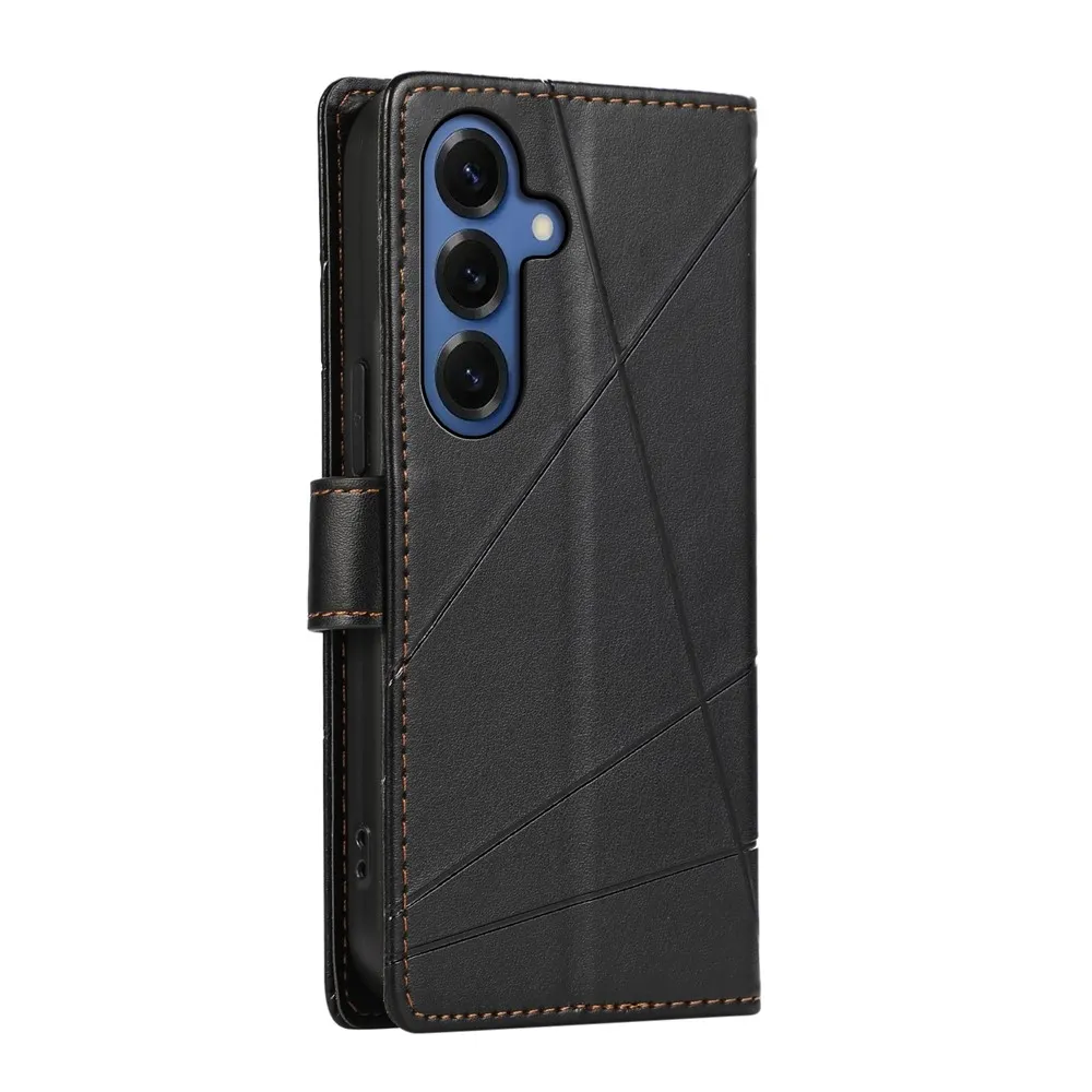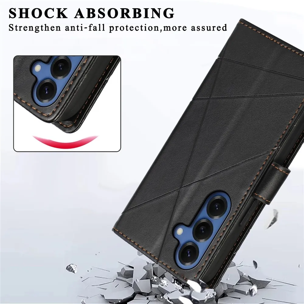✅Prémiový materiál: Line knížkové pouzdro na mobil Samsung Galaxy S26+ v černé barvě je vyrobeno z umělé kůže s texturou linek + matný TPU pružný gel, poskytuje vynikající ochranu proti poškrábání, pádům a každodennímu opotřebení