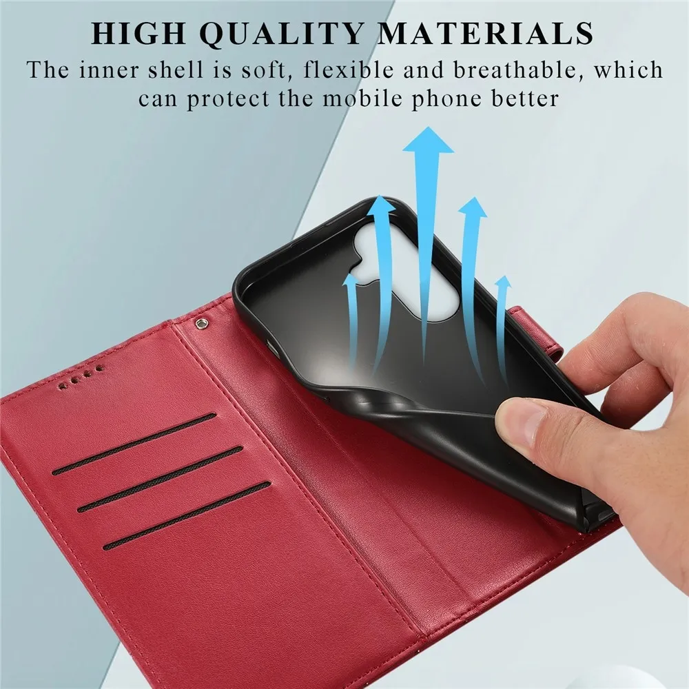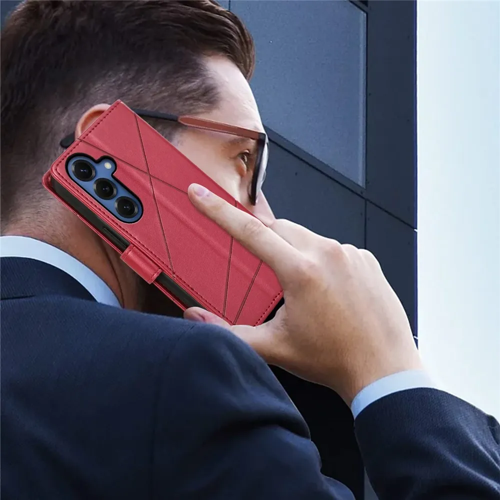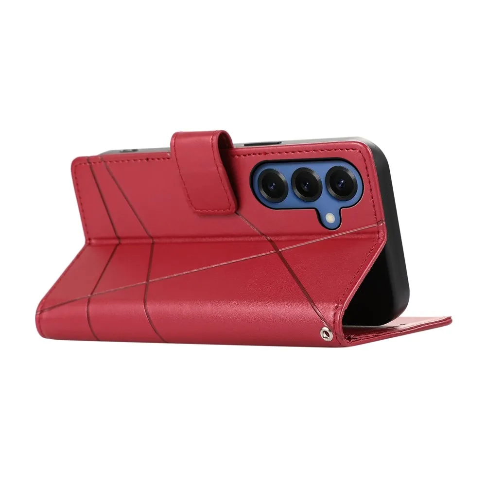 ✅Prémiový materiál: Line knížkové pouzdro na mobil Samsung Galaxy S26+ v červené barvě je vyrobeno z umělé kůže s texturou linek + matný TPU pružný gel, poskytuje vynikající ochranu proti poškrábání, pádům a každodennímu opotřebení