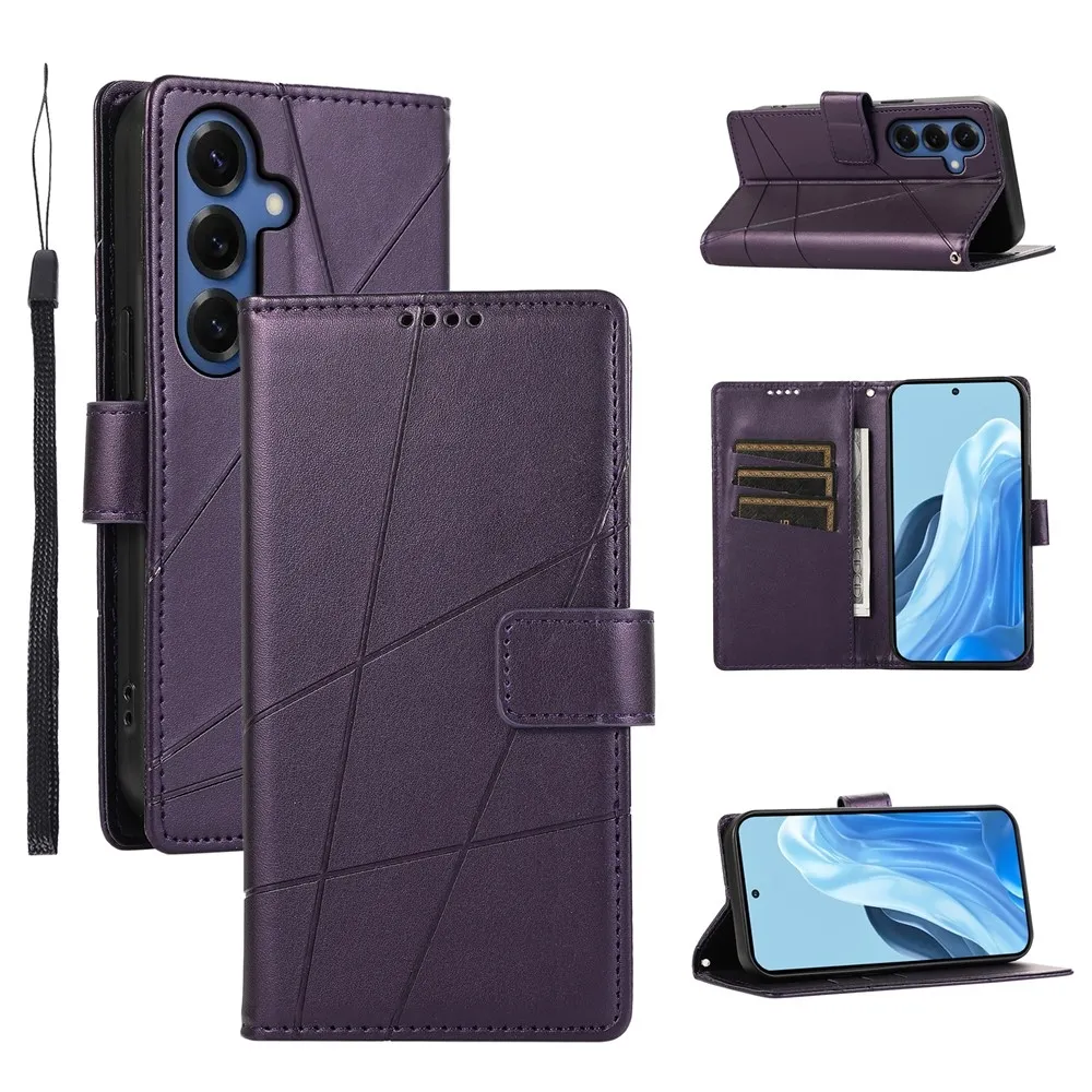 ✅Prémiový materiál: Line knížkové pouzdro na mobil Samsung Galaxy S26+ ve světlefialové barvě je vyrobeno z umělé kůže s texturou linek + matný TPU pružný gel, poskytuje vynikající ochranu proti poškrábání, pádům a každodennímu opotřebení