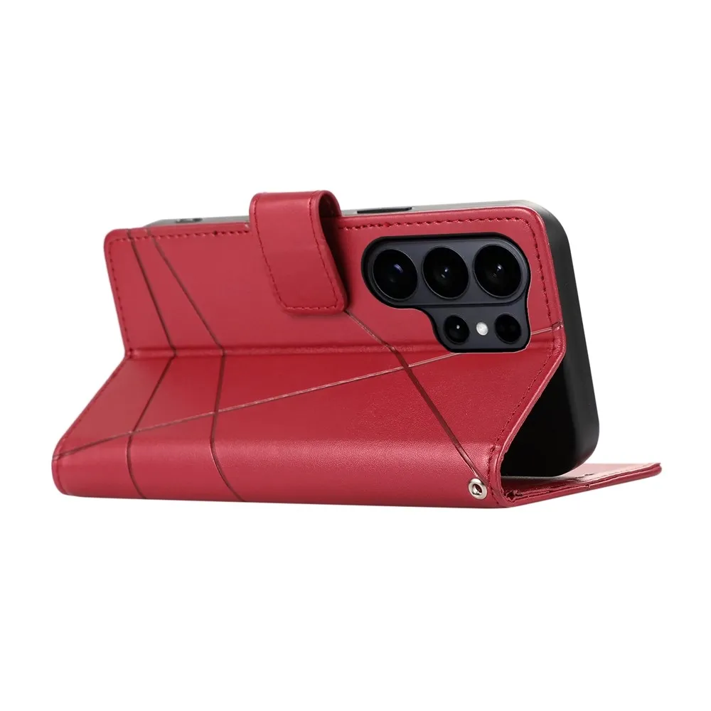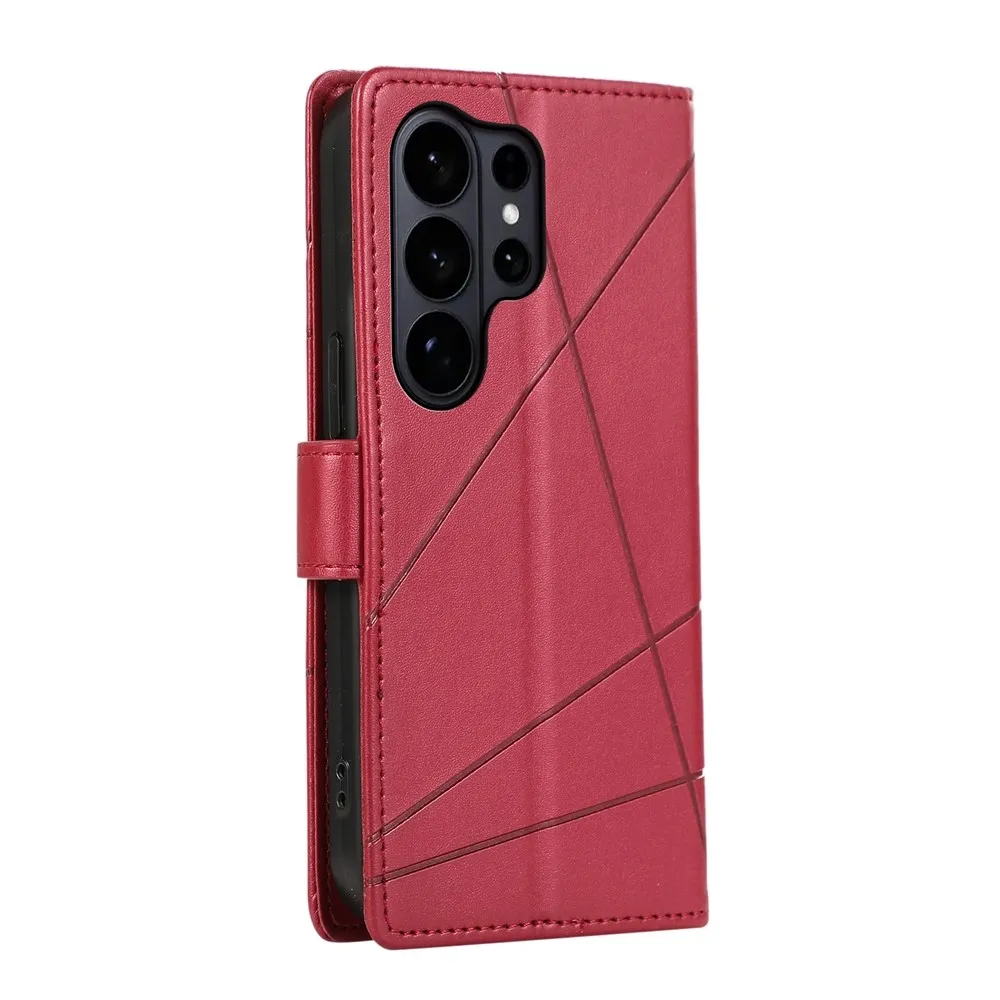 ✅Prémiový materiál: Line knížkové pouzdro na mobil Samsung Galaxy S26 Ultra v červené barvě je vyrobeno z umělé kůže s texturou linek + matný TPU pružný gel, poskytuje vynikající ochranu proti poškrábání, pádům a každodennímu opotřebení