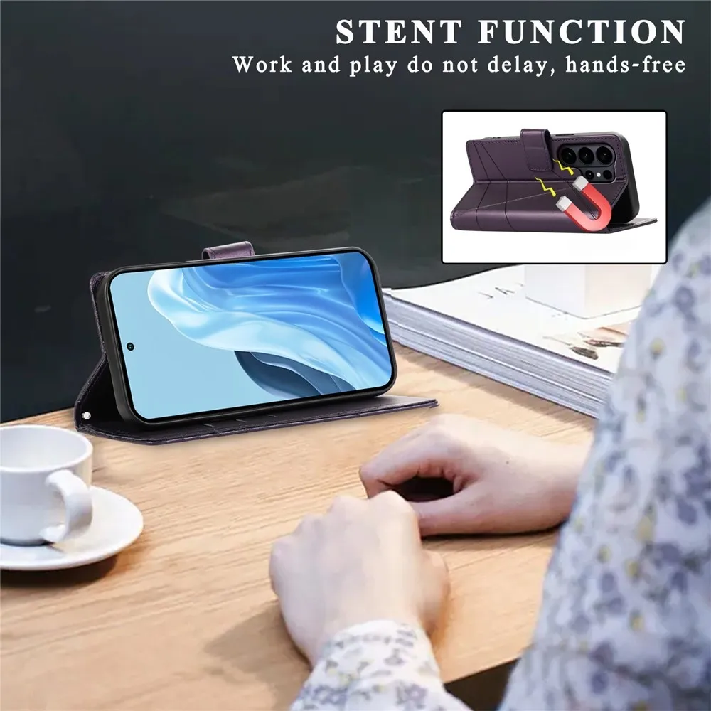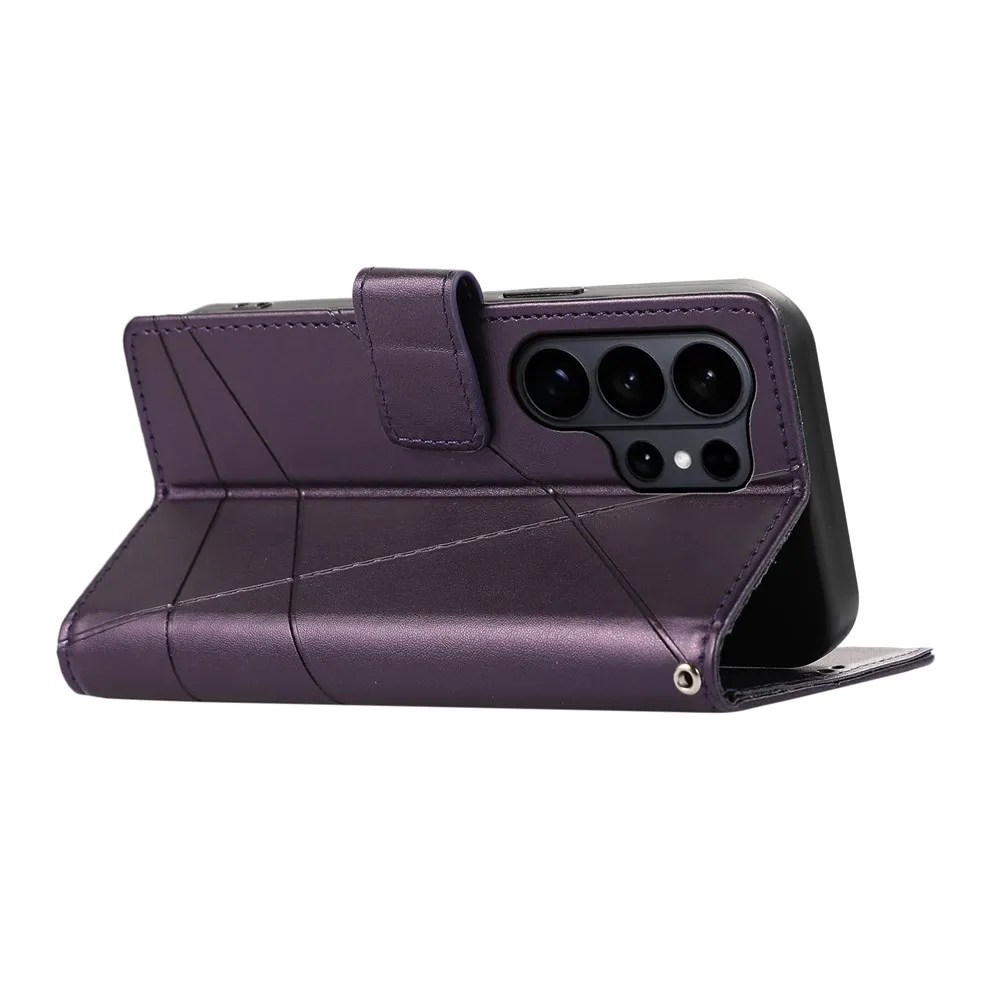 ✅Prémiový materiál: Line knížkové pouzdro na mobil Samsung Galaxy S26 Ultra ve světlefialové barvě je vyrobeno z umělé kůže s texturou linek + matný TPU pružný gel, poskytuje vynikající ochranu proti poškrábání, pádům a každodennímu opotřebení