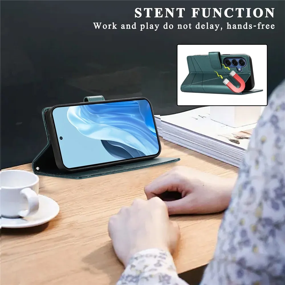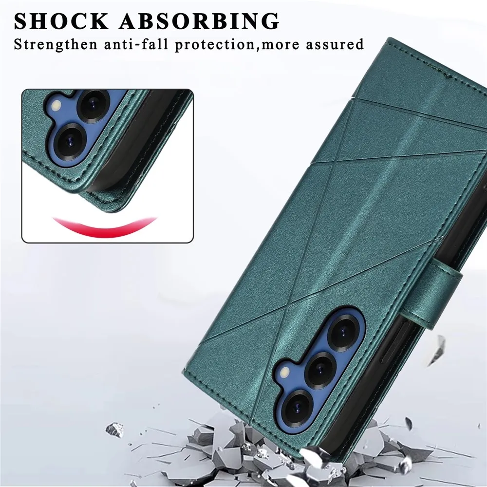 ✅Prémiový materiál: Line knížkové pouzdro na mobil Samsung Galaxy S26 v zelené barvě je vyrobeno z umělé kůže s texturou linek + matný TPU pružný gel, poskytuje vynikající ochranu proti poškrábání, pádům a každodennímu opotřebení