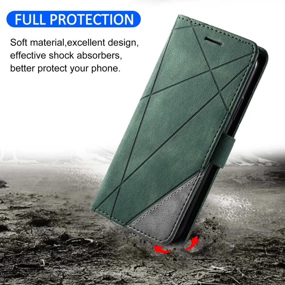 ✅Prémiový materiál: Lines knížkové pouzdro na mobil Xiaomi Redmi Note 14 Pro 5G/Poco X7 5G/Note 14 Pro+ 5G v zelené barvě je vyrobeno z umělé kůže s texturou linek + matný TPU pružný gel, poskytuje vynikající ochranu proti poškrábání, pádům a každodennímu opotřebení
