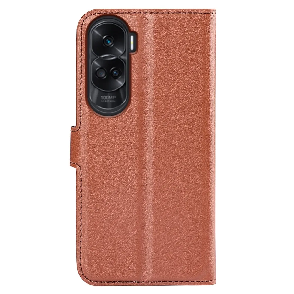 Litchi knížkové pouzdro na Honor 90 Lite - hnědé
