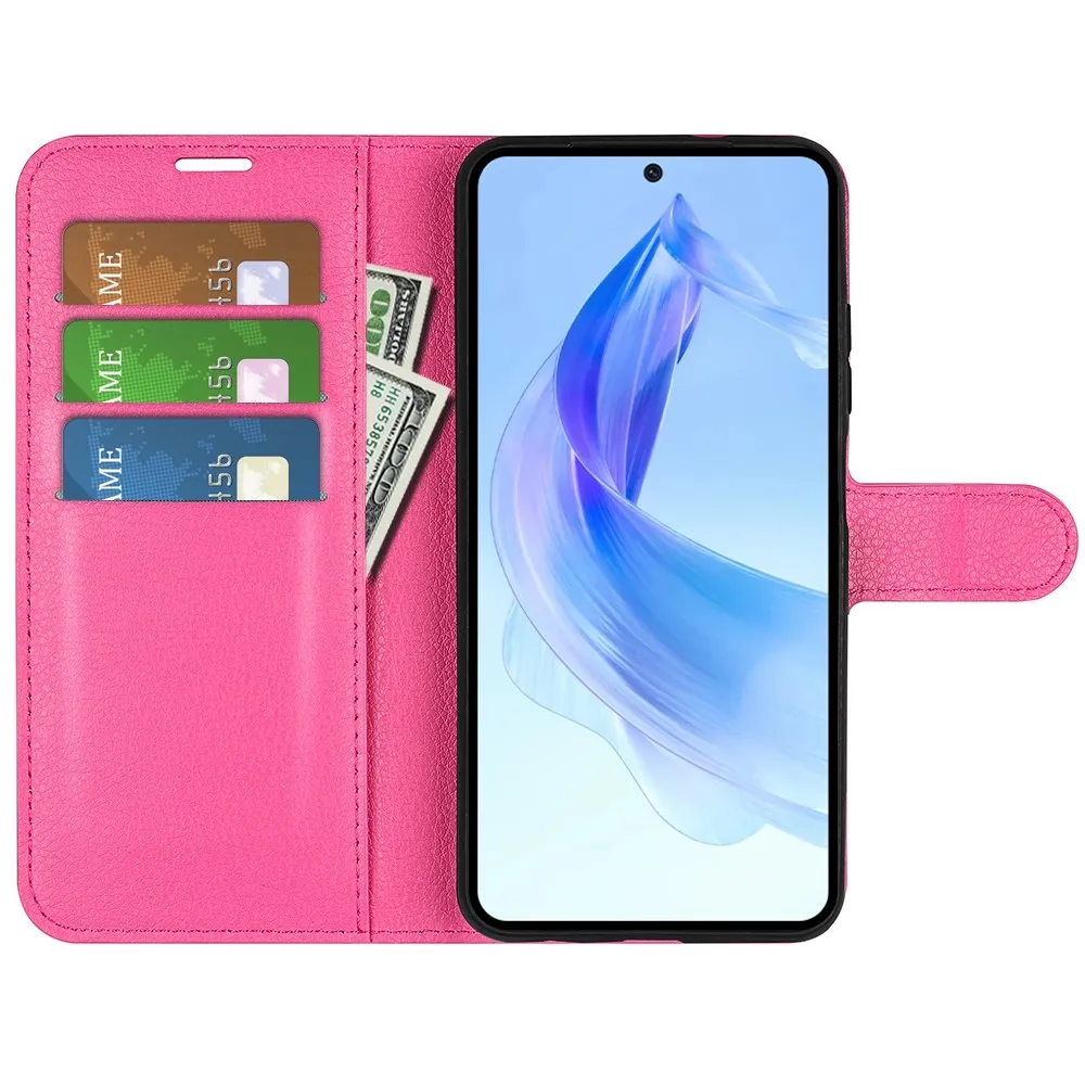 Rose peněženkové pouzdro Litchi na Honor 90 Lite