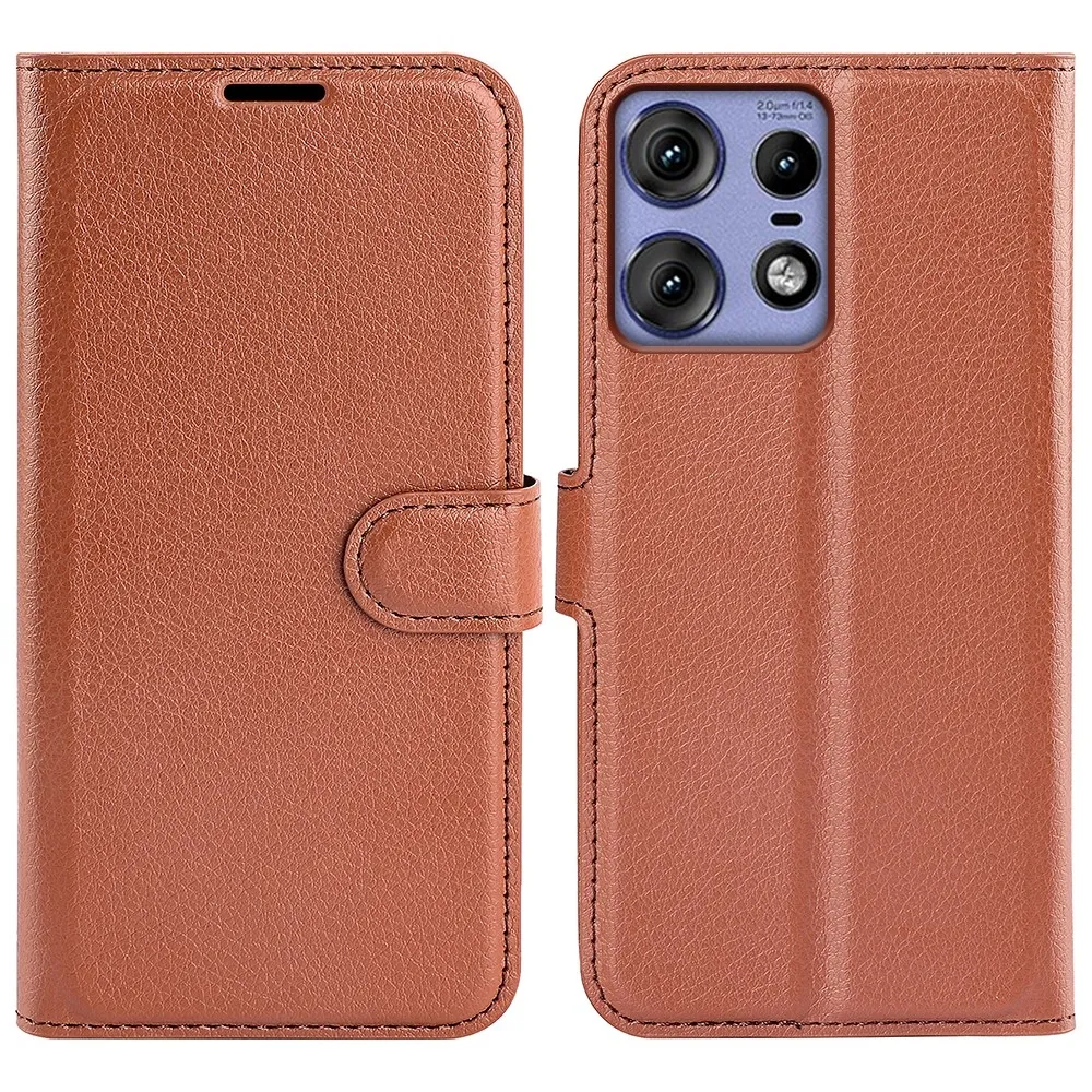 Litchi knížkové pouzdro na Motorola Edge 50 Pro 5G - hnědé