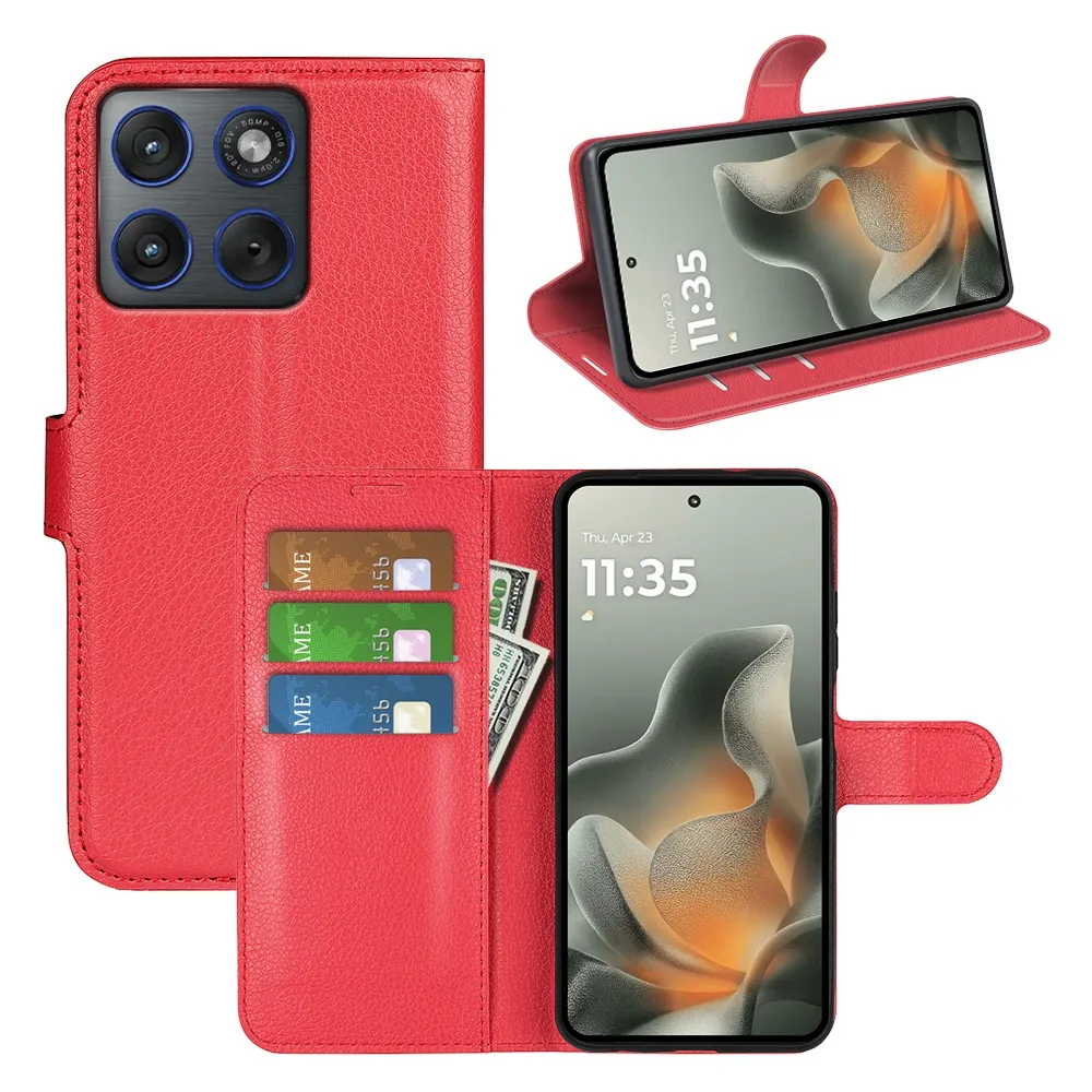 Litchi knížkové pouzdro na Motorola Edge 70 5G - červené