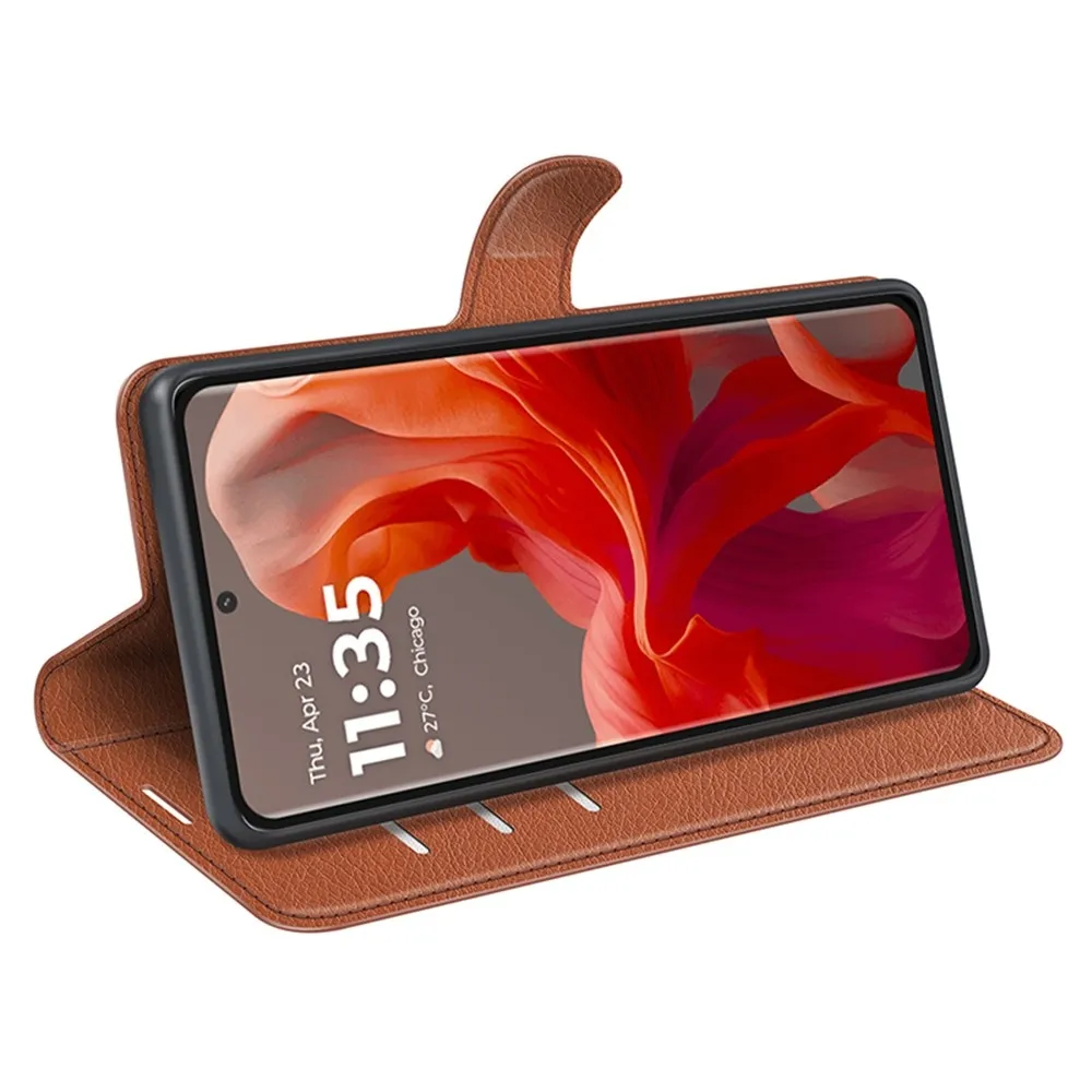 Hnědé peněženkové pouzdro Litchi na mobil Motorola Moto G85 5G