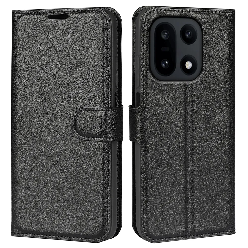 Litchi knížkové pouzdro na OnePlus 15 5G - černé