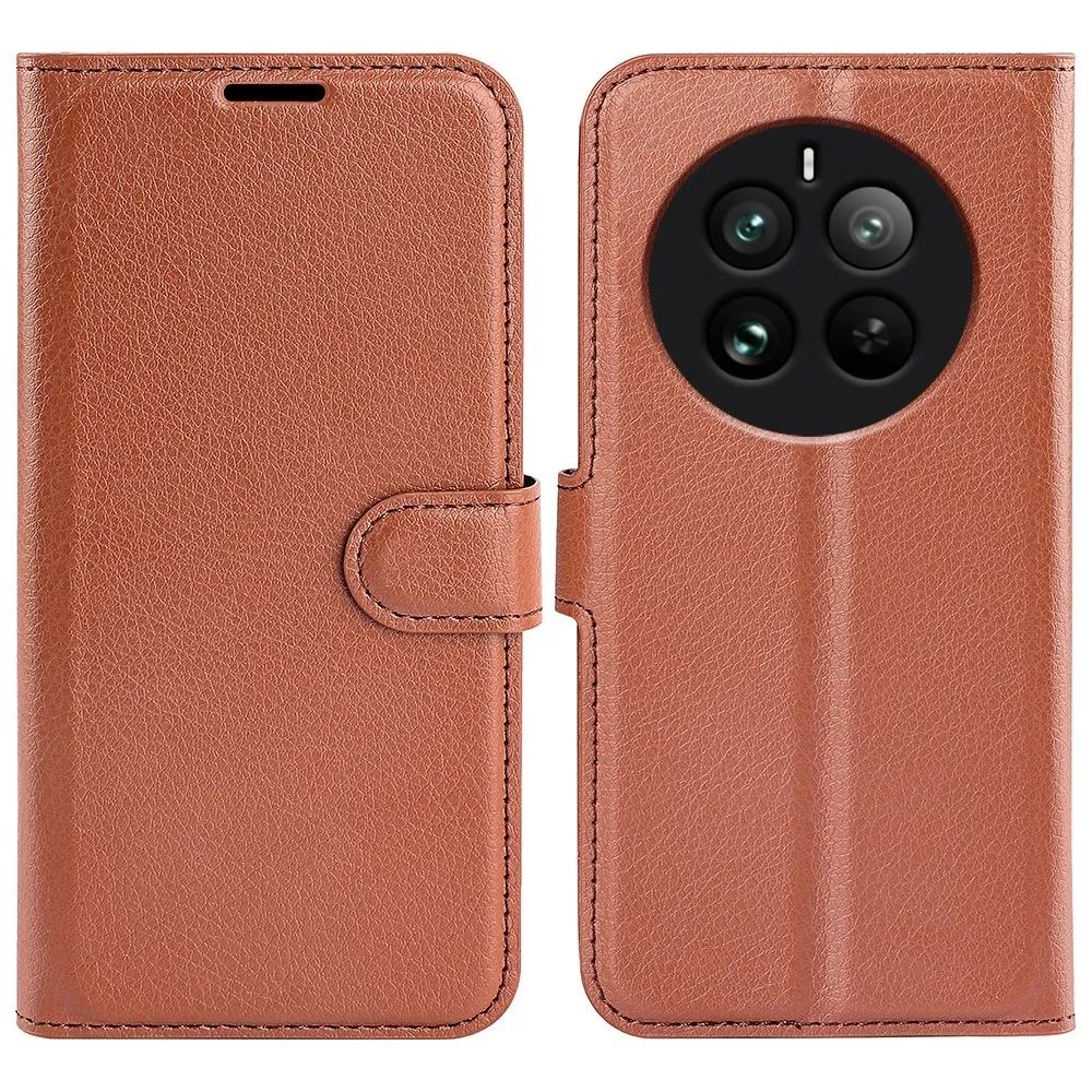 Litchi knížkové pouzdro na Realme 12 Pro 5G/12 Pro+ 5G - hnědé