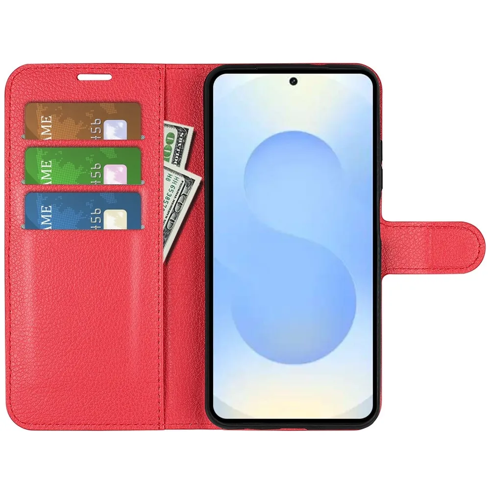 Červené peněženkové pouzdro Litchi na mobil Samsung Galaxy S26+