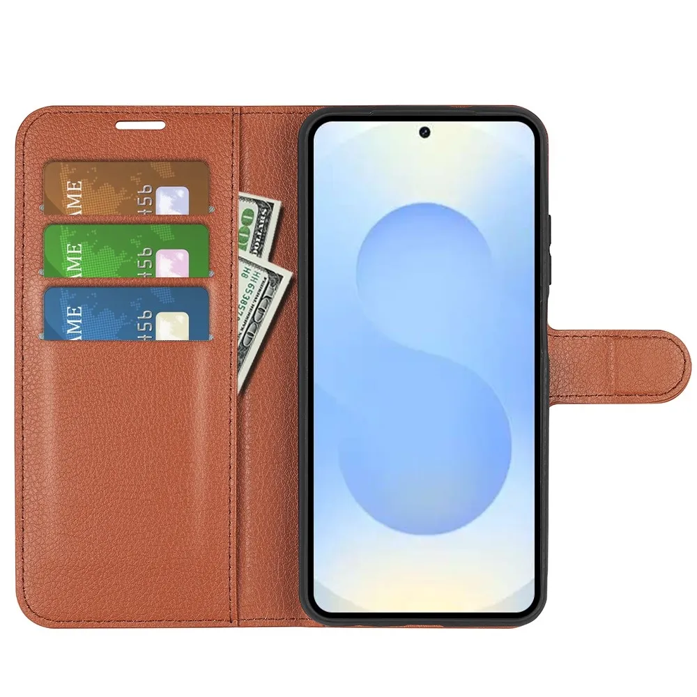 Hnědé peněženkové pouzdro Litchi na mobil Samsung Galaxy S26+