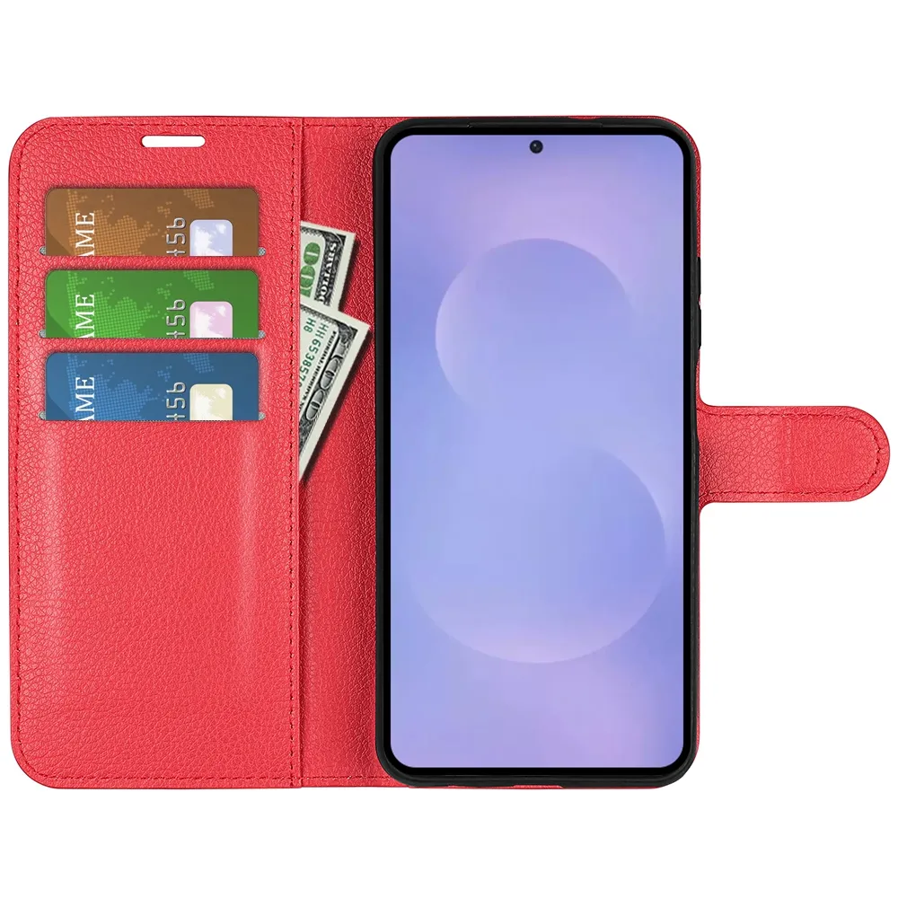 Červené peněženkové pouzdro Litchi na mobil Samsung Galaxy S26/S26 Pro