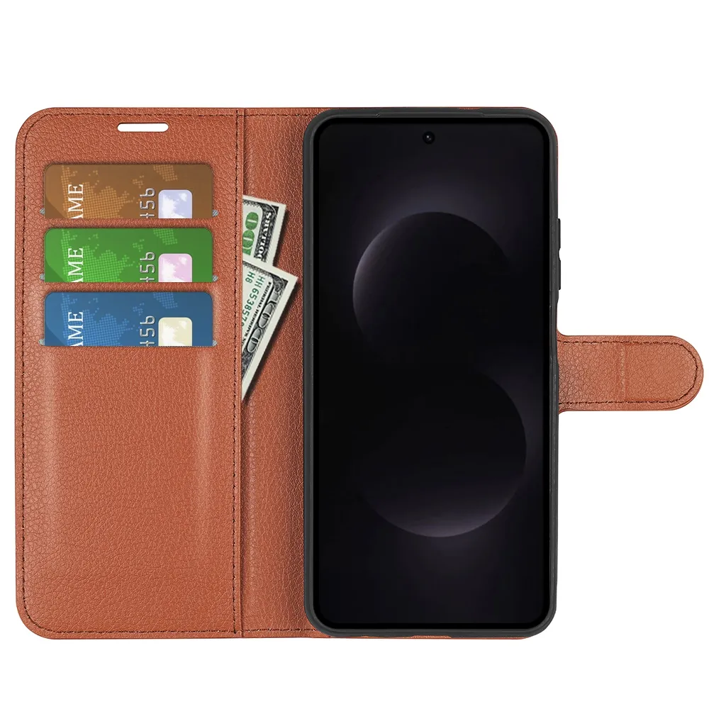Hnědé peněženkové pouzdro Litchi na mobil Samsung Galaxy S26 Ultra