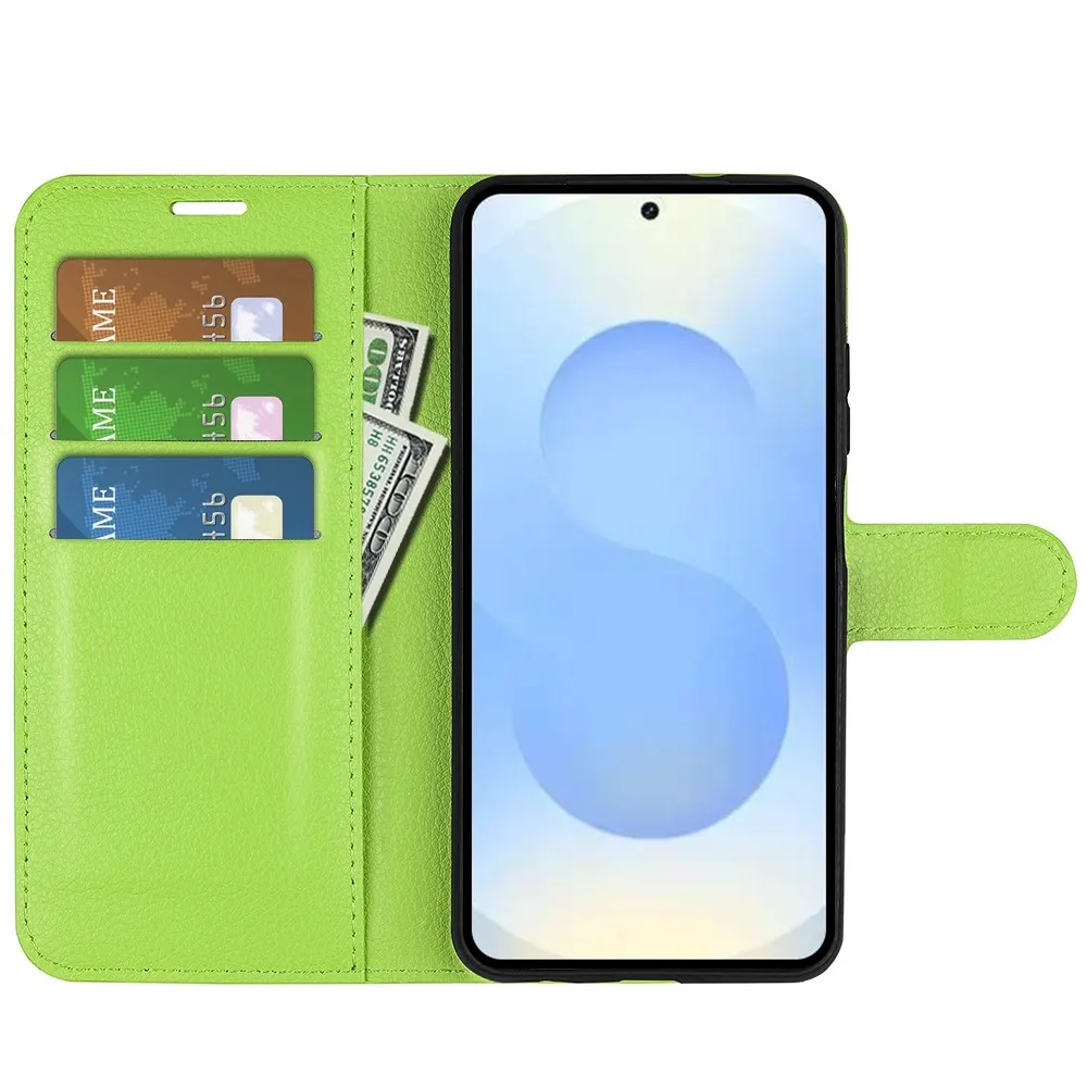 Zelené peněženkové pouzdro Litchi na mobil Samsung Galaxy S26+