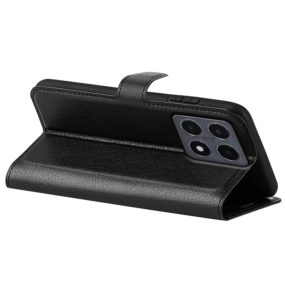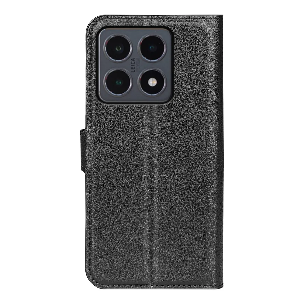 Černé peněženkové pouzdro Litchi na mobil Xiaomi 15T