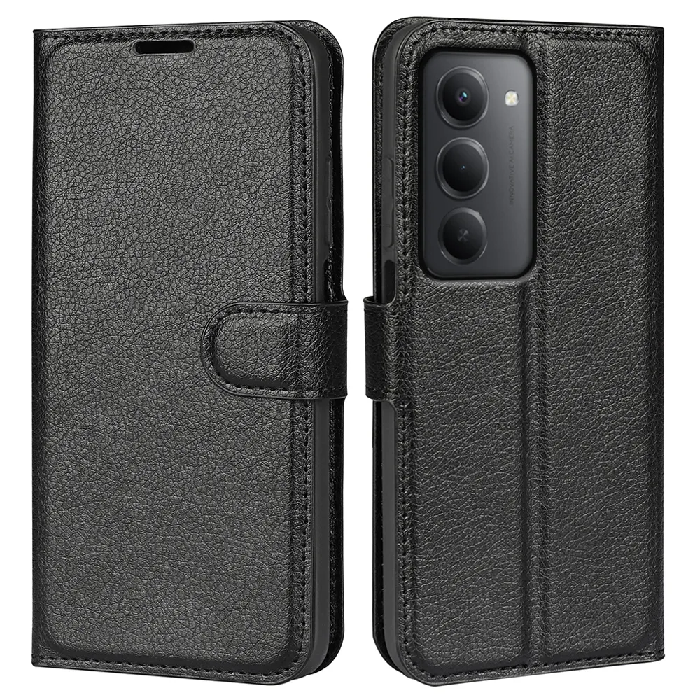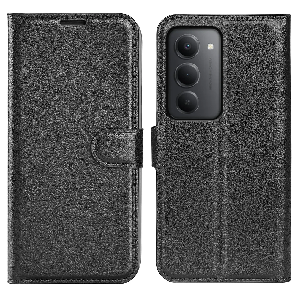 Litchi knížkové pouzdro na Xiaomi Redmi 15 4G/5G (171mm) - černé