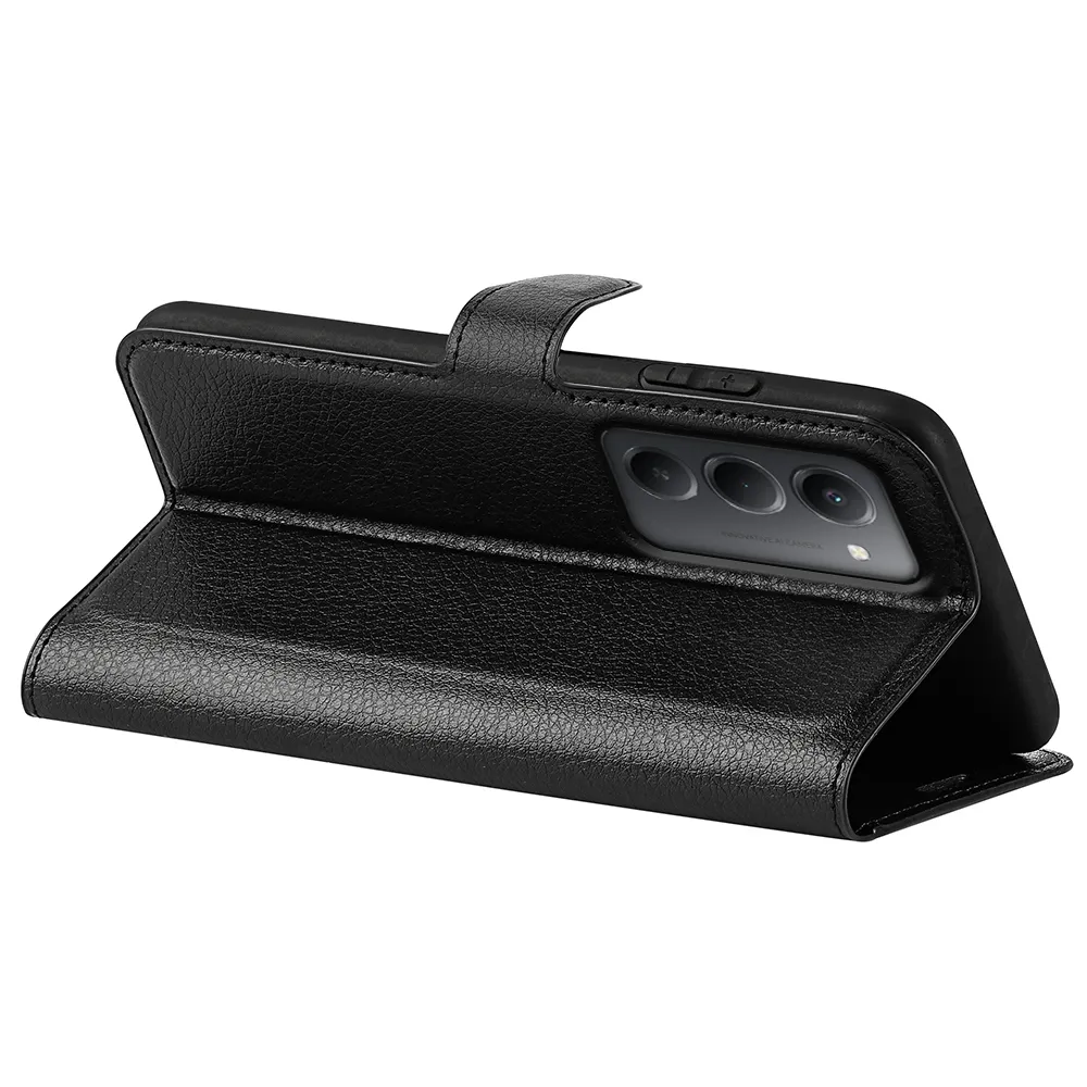 Černé peněženkové pouzdro Litchi na mobil Xiaomi Redmi 15 4G/5G (171mm)