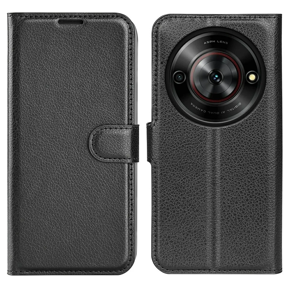 Litchi knížkové pouzdro na ZTE Blade A75 5G - černé