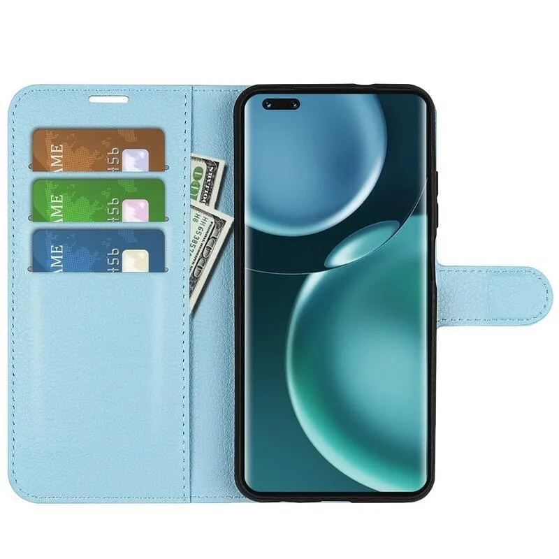 Litchi PU kožené peněženkové pouzdro na mobil Honor Magic 4 Pro 5G - modré