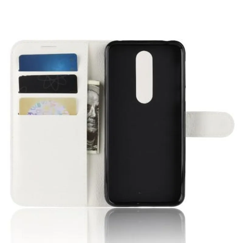 Litchi PU kožené peněženkové pouzdro na mobil Nokia 7.1 - bílé