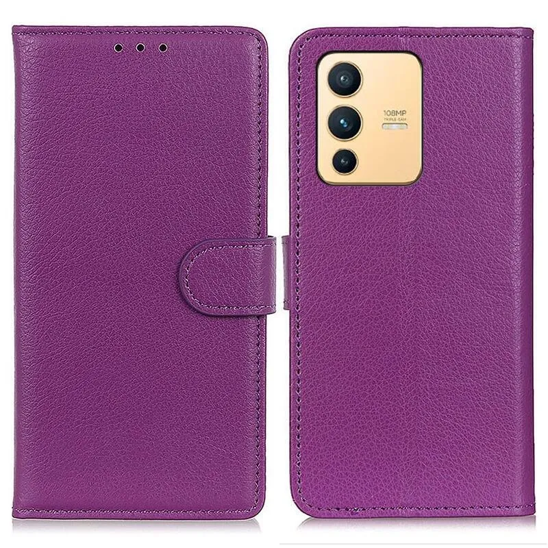 Litchi fialové knížkové pouzdro na telefon Vivo V23 5G