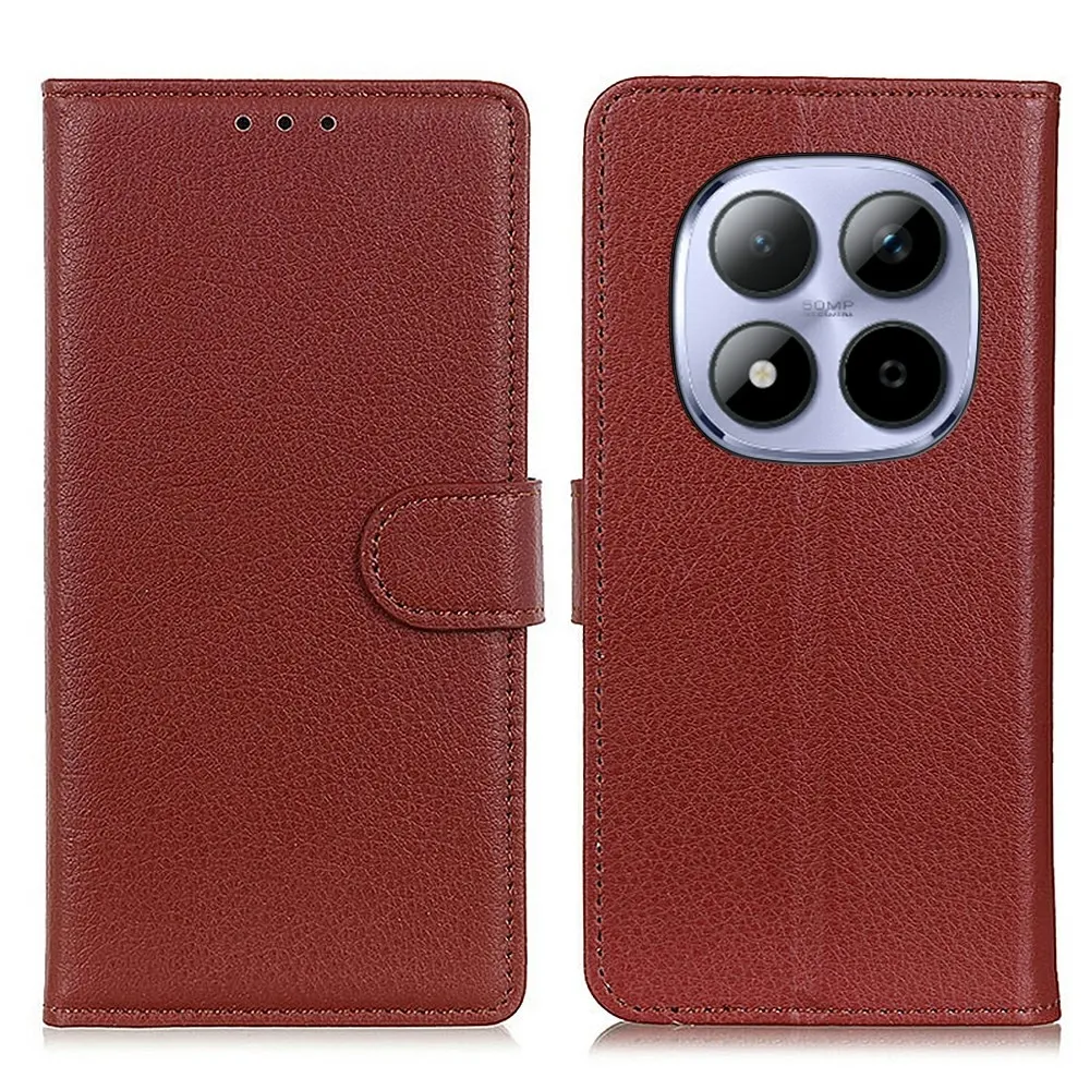 Litchie knížkové pouzdro na Xiaomi Redmi Note 15 Pro 4G - hnědé