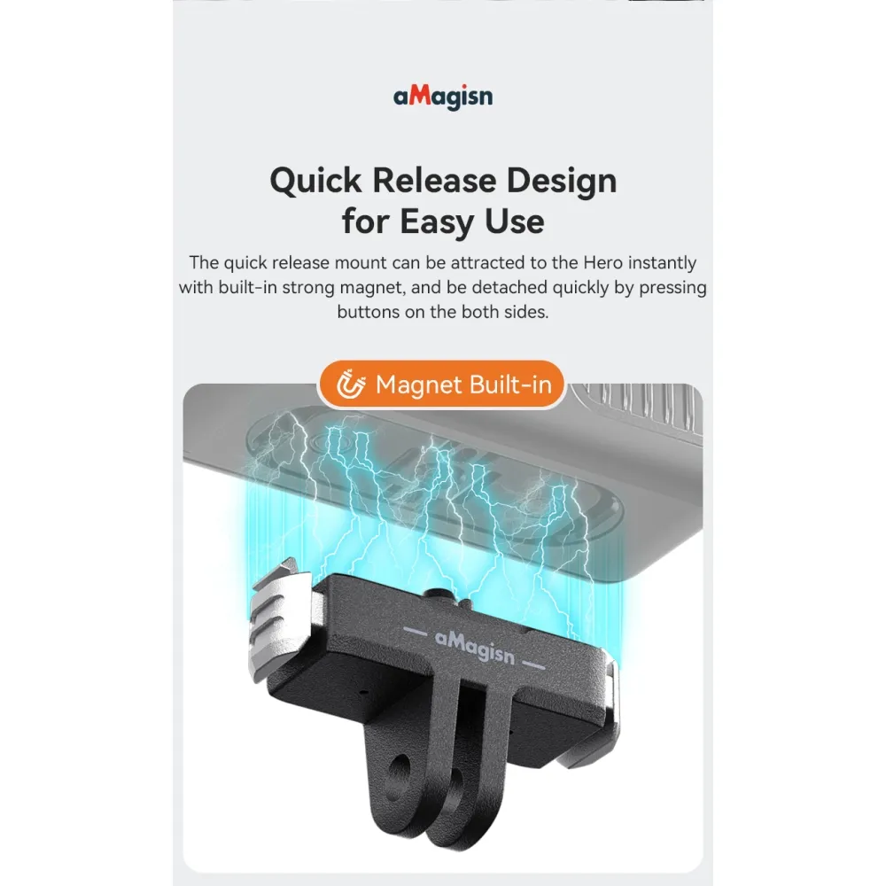 Kompaktní magnetický držák pro snadné a pevné uchycení kamery GoPro Hero13 při natáčení, ideální pro rychlou montáž bez šroubování.