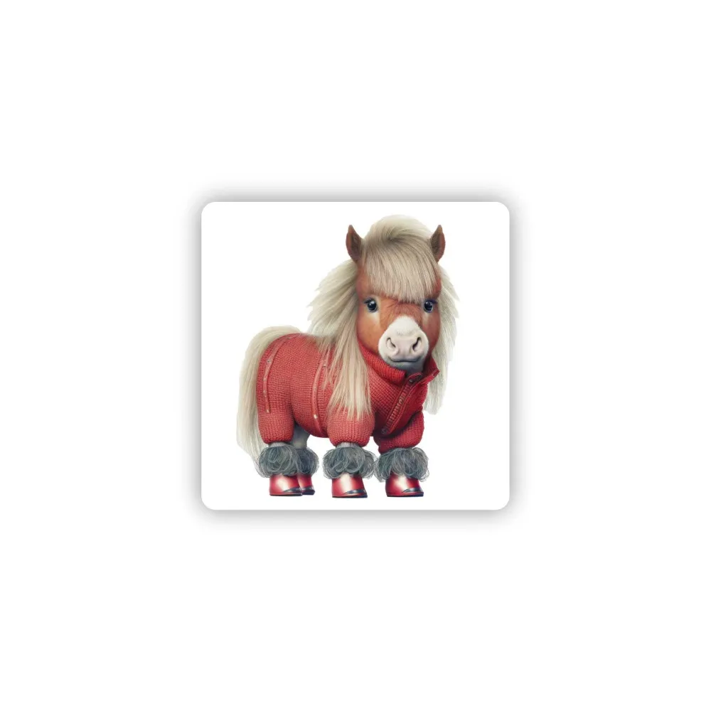 Magnetka s motivem poníka ve svetru přináší do prostoru nádech radosti a osobitosti. Vynikne svým živým zpracováním, které krásně zachycuje charakter i energii vybraného motivu. Skvěle se hodí na lednici, tabuli nebo jiný kovový povrch, kde se stane malým, ale milým detailem domova. Díky kvalitnímu potisku si udrží své syté barvy a jemné linie i při častém používání.