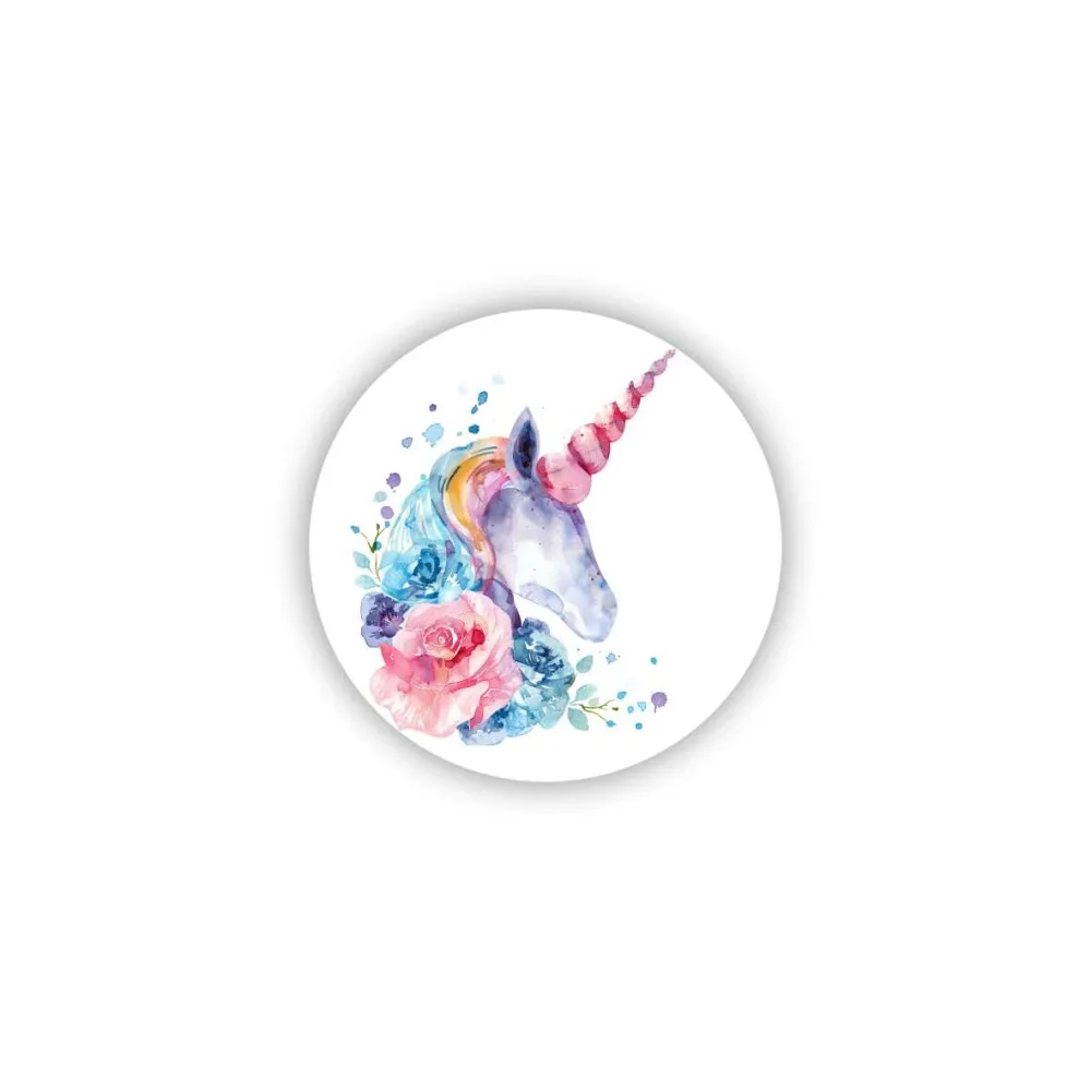Kulatá magnetka s rozměry 60x60mm s motivem jednorožec v akvarelovém stylu