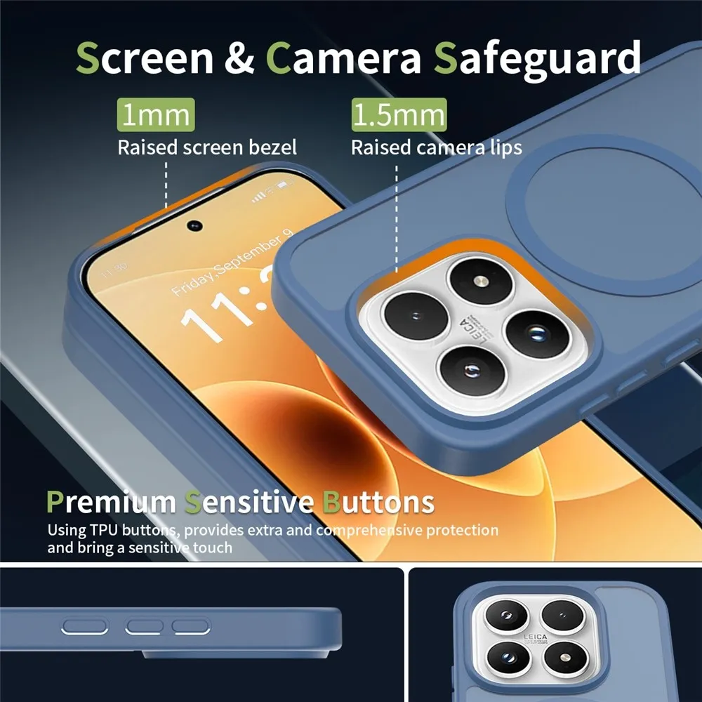Matte gelový obal s pevnými zády a MagSafe na Xiaomi 17 - modrý