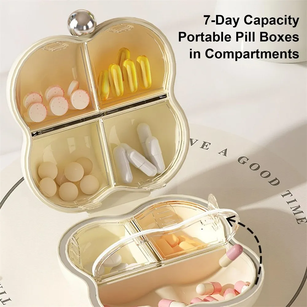 Vnitřní prostor je rozdělen do 7 samostatných přihrádek, které umožňují oddělené uložení jednotlivých tablet a zabraňují jejich smíchání nebo kontaminaci. Díky tomu zůstává užívání léků přehledné a organizované. Kompaktní rozměry 7,5 × 7,5 cm poskytují dostatek prostoru pro více tablet, přesto se organizér snadno vejde do kabelky, batohu nebo cestovního zavazadla.