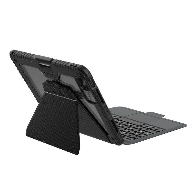 Nillkin Bumper Link Keyboard Case je víceúčelový ochranný kryt tabletu s odnímatelnou podsvícenou klávesnicí, slotem pro Apple Pencil a plynule nastavitelným úhlem tabletu.