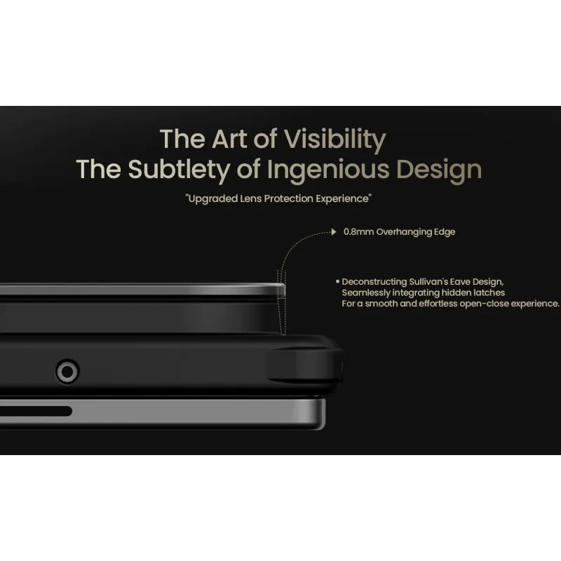Kreativní design kovového rámu kolem fotoaparátu nejen chrání fotoaparát, ale také slouží jako stojánek.