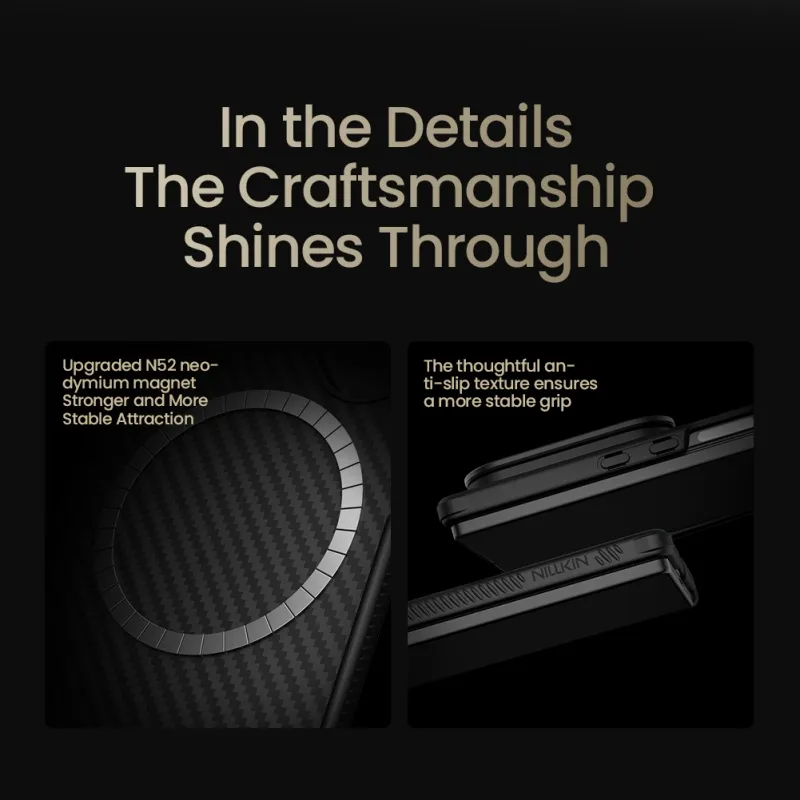 Nillkin CarboProp aramid zadní kryt je vyroben z aramidového vlákna, běžně známého jako "černé zlato" v materiálovém průmyslu.