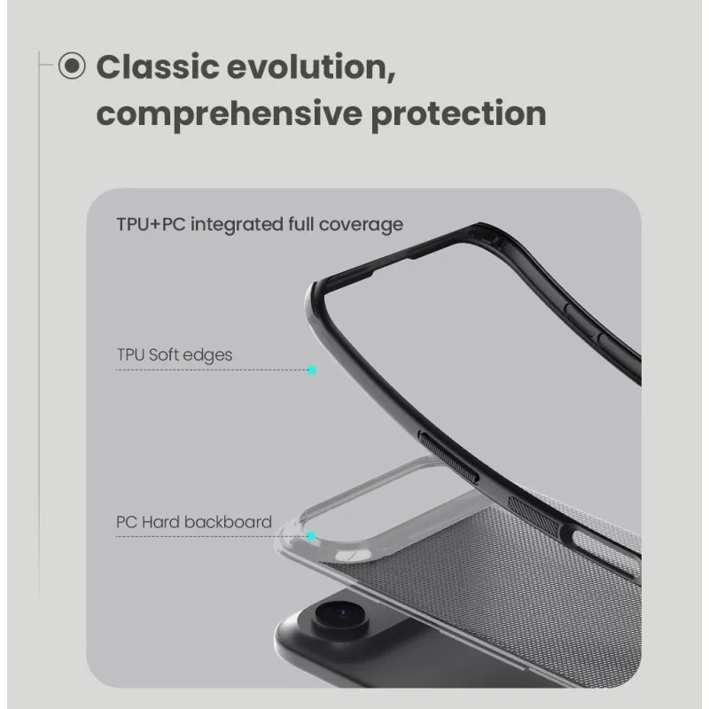 Skládá se z tvrdého a odolného plastu na zadní straně a TPU měkkého plastu na bocích.