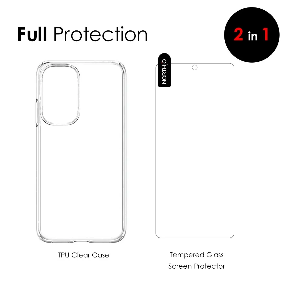 NORTHJO průhledný gelový obal + tvrzené sklo na Samsung Galaxy A53 5G - průhledný