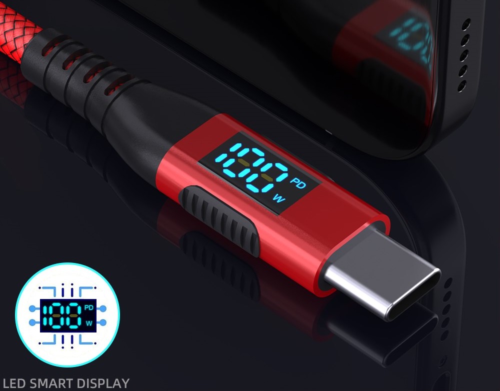 Integrovaný digitální displej zobrazuje aktuální výkon nabíjení v reálném čase, což umožňuje mít lepší kontrolu nad procesem nabíjení. Kabel podporuje technologie PD, QC, AFC a FCP, které zajišťují rychlé a efektivní doplnění energie.