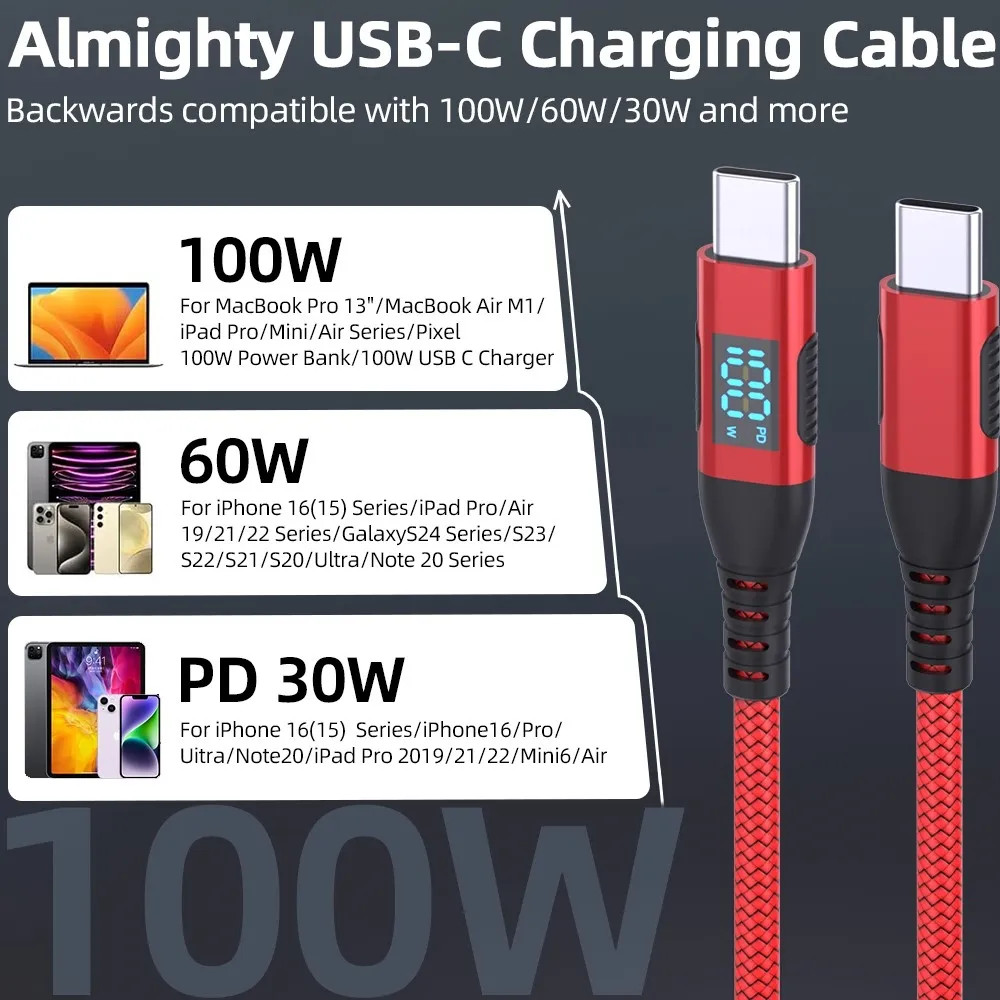 USB-C / USB-C kabel s displejem je navržen pro rychlé nabíjení i spolehlivý přenos dat u moderních zařízení. Podporuje výkon až 100 W (5A/20V), takže bez problémů zvládne napájet nejen telefony a tablety, ale i notebooky.