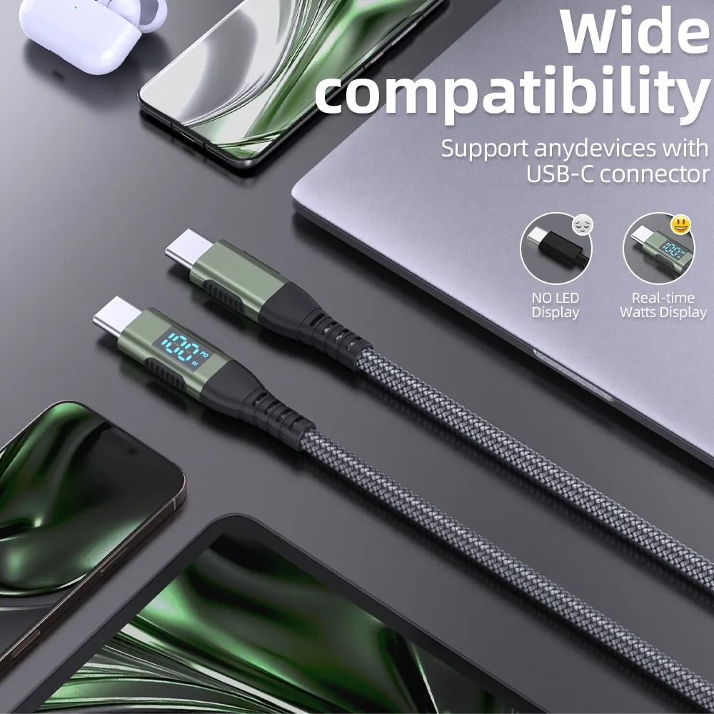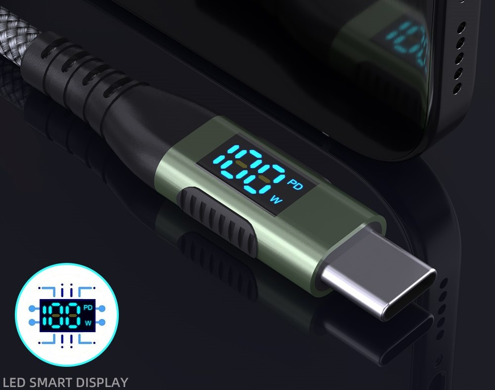 Integrovaný digitální displej zobrazuje aktuální výkon nabíjení v reálném čase, což umožňuje mít lepší kontrolu nad procesem nabíjení. Kabel podporuje technologie PD, QC, AFC a FCP, které zajišťují rychlé a efektivní doplnění energie.